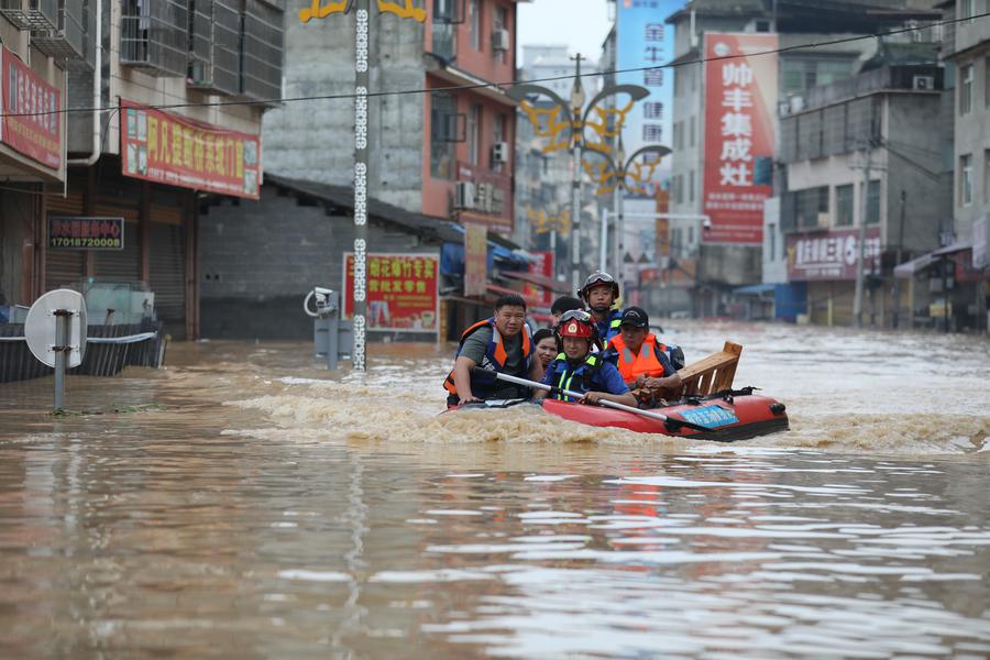กุ้ยหยาง, 25 มิ.ย. (ซินหัว) — เหตุฝนตกหนักต่อเนื่องและน้ำไหลบ่าจากต้นน้ำทำให้เกิดน้ำท่วมรุนแรงในสองอำเภอของมณฑลกุ้ยโจวทางตะวันตกเฉียงใต้ของจีน ส่งผลให้มีการอพยพประชาชนชั่วคราวจำนวน 48,900 คนในอำเภอหรงเจียง และ 32,000 คนในอำเภอฉงเจียง เมื่อนับถึง 14.30 น. ของวันอังคาร (24 มิ.ย.) และทางการได้ยกระดับการรับมือเหตุฉุกเฉินเพื่อควบคุมอุทกภัยเป็นระดับ 1 ซึ่งเป็นระดับสูงสุดในทั้งสองอำเภอ
