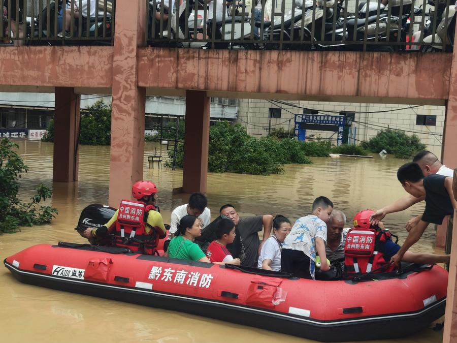 ทีมกู้ภัยที่ประกอบด้วยนักดับเพลิงและอาสาสมัครนำเรือและอุปกรณ์อื่นๆ มาใช้ในการกู้ภัยในสองอำเภอ ด้านสำนักฉุกเฉินประจำกุ้ยโจวได้จัดสรรสิ่งของบรรเทาทุกข์ อาทิ น้ำดื่ม 30,000 ขวด และบะหมี่กึ่งสำเร็จรูป 10,000 ชาม ให้กับทั้งสองอำเภอที่ประสบภัยด้วยรถไฟความเร็วสูงและการขนส่งทางถนน เมื่อนับถึงตอน 16.00 น. ของวันอังคาร (24 มิ.ย.)