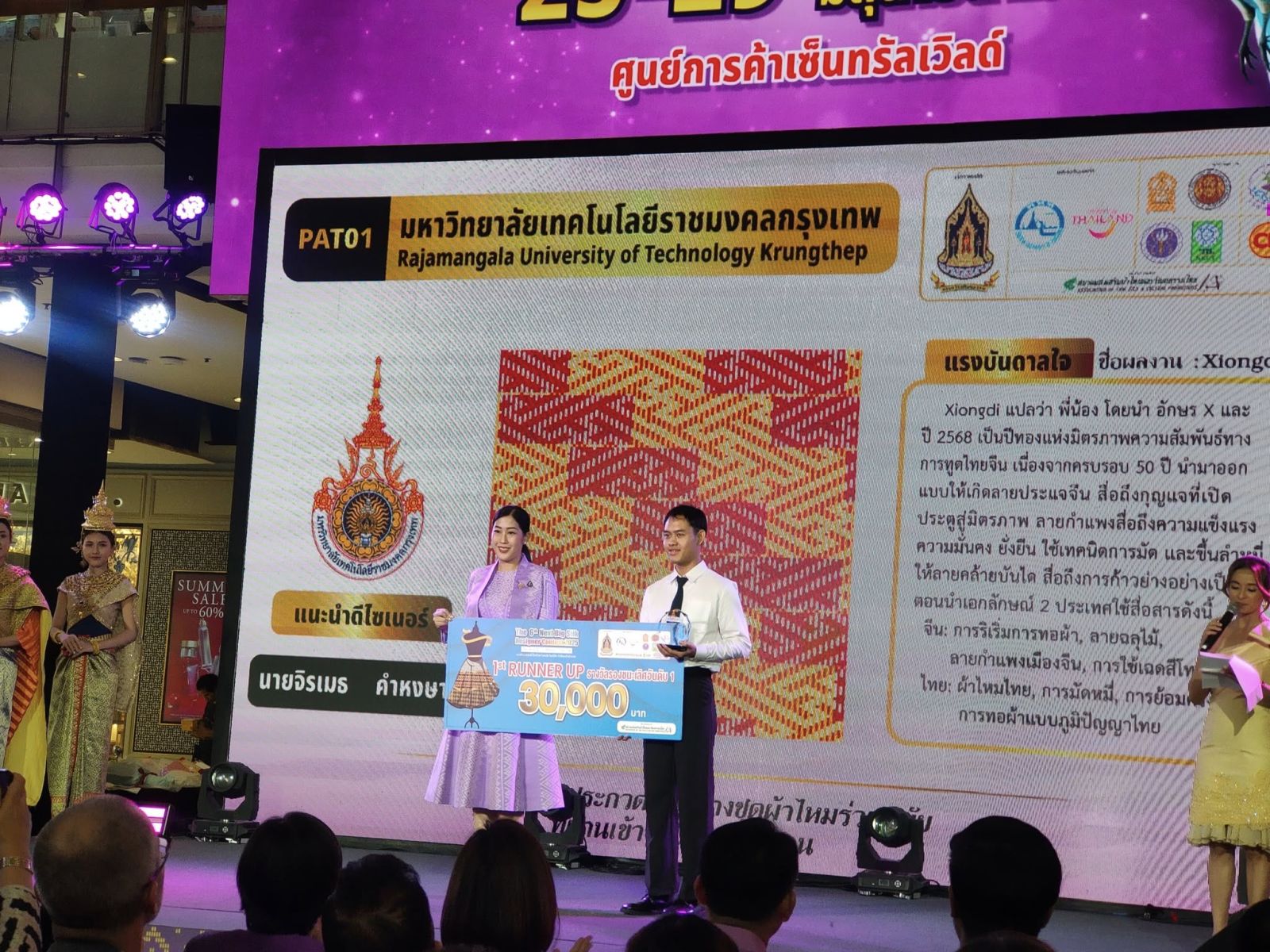-รางวัลขนะเลิศ ได้แก่ นายธีรภัทร์ เพิ่งพินิจ มหาวิทยาลัยธรรมศาสตร์ ในผลงาน พัสตร์พริ้งแพรวพราว