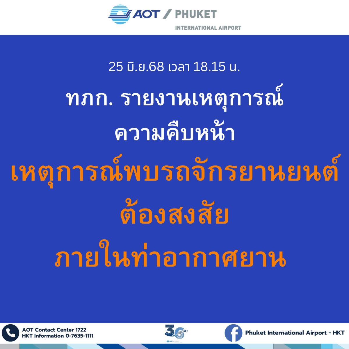 จากกรณีเหตุการณ์พบรถจักรยานยนต์ต้องสงสัยภายในท่าอากาศยานภูเก็ต (ทภก.)