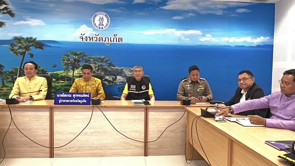 เมื่อเวลา 15.30 น. (26 มิ.ย.68) นายโสภณ สุวรรณนรัตน์ ผู้ว่าราชการจังหวัดภูเก็ต เป็นประธานการประชุมหน่วยงานความมั่นคง (กรณีพิเศษ) หลังตรวจพบวัตถุต้องสงสัยที่คนร้ายนำวางในพื้นที่จังหวัดภูเก็ตหลายจุด และมีการตรวจพบและทำลายไปแล้ว 3 จุด ประกอบด้วย สนามบินภูเก็ต หาดป่าตอง และแหลมพรหมเทพ โดยมีพล.ต.ต.สินเลิศ สุขุม ผู้บังคับการตำรวจภูธรจังหวัดภูเก็ต หน่วยงานด้านความมั่นคง ทั้งฝ่ายปกครอง ทหารและตำรวจ เข้าร่วม ณ ห้องประชุมชั้น 4 ศาลากลางจังหวัดภูเก็ต เพื่อติดตามความคืบหน้าเหตุการณ์ดังกล่าว และมาตรการต่างๆในการดูแลรักษาความปลอดภัยในพื้นที่จังหวัดภูเก็ตโดยเฉพาะตามแหล่งท่องเที่ยวสำคัญๆ