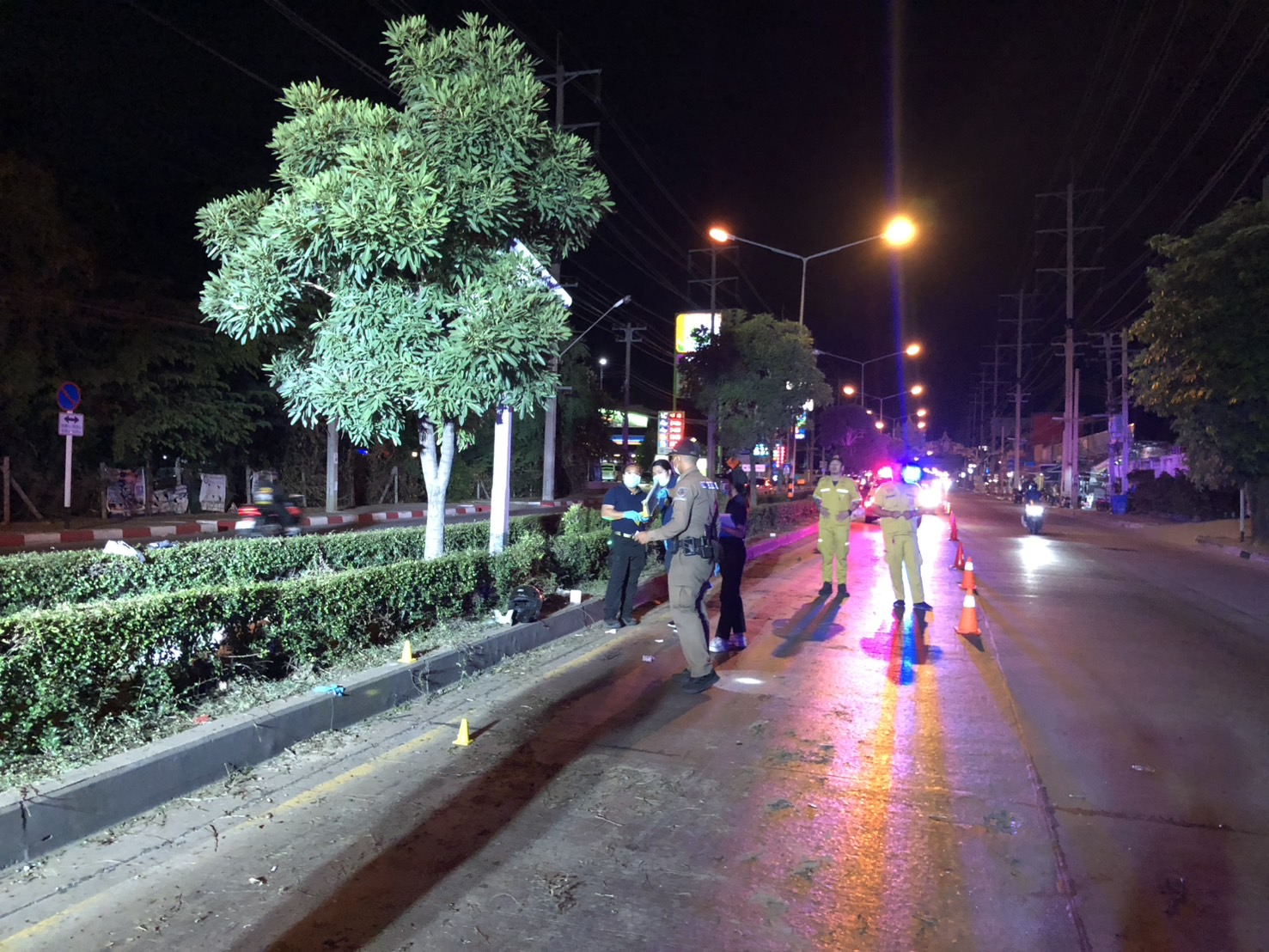 ที่เกิดเหตุ พบร่างผู้เสียชีวิต ตรวจสอบ เป็นชายไทย อายุ 18 ปีนอนเสียชีวิตอยู่บนเกาะกลางถนน และห่างไปไกลกว่า 30 เมตรพบรถจักรยานยนต์แบบบิ๊กไบค์ ยี่ห้อ ยามาฮ่า รุ่น อาร์ 7 สีดำ ทะเบียน ชลบุรี ไถลไปชนป้ายและกระถางต้นไม้หน้าร้านรับติดตั้งกระจกและอะลูมิเนียม โดยในที่เกิดเหตุไม่พบรถคู่กรณี เจ้าหน้าที่ตรวจสอบยังพบร่องรอยขูดที่เกาะกลางถนนเป็นทางยาว