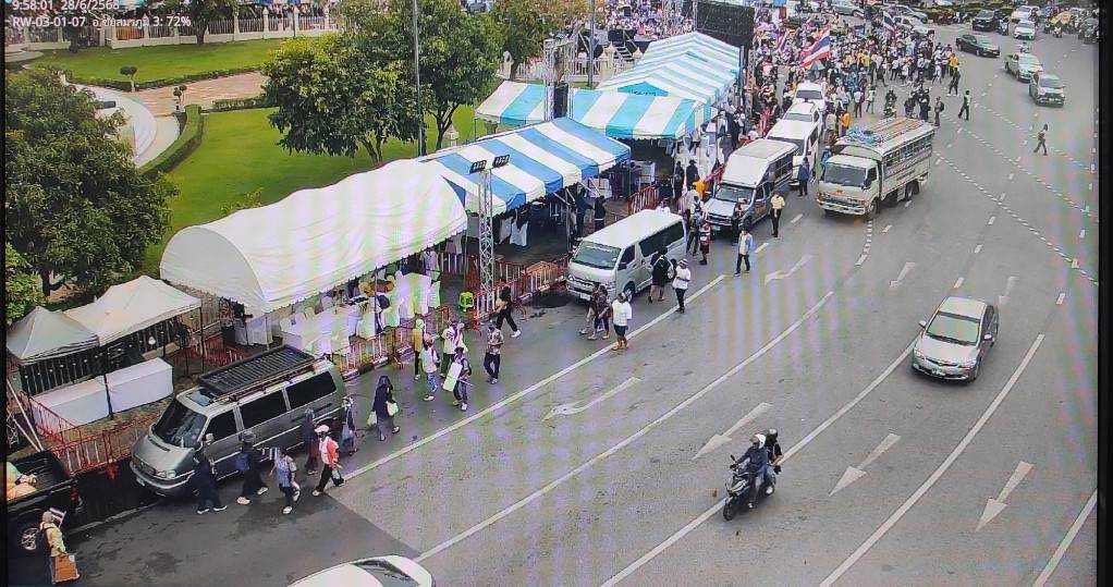 ผู้ชุมนุมเริ่มเข้าพื้นที่อนุสาวรียชัยสมรภูมิ อาจส่งผลกระทบต่อการจราจรโดยรอบ แนะให้ใช้เส้นทางเลี่ยง