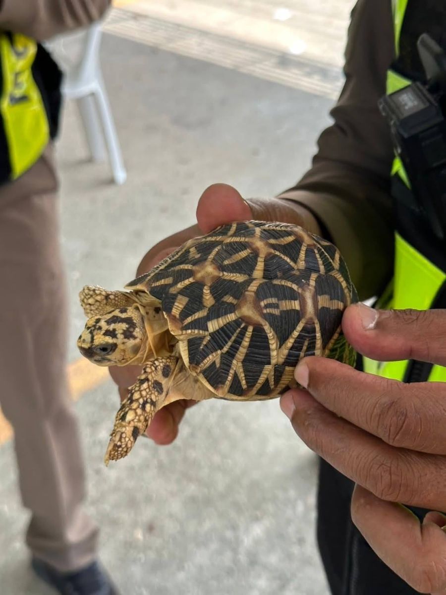 โดยขณะรถคันดังกล่าวขับเข้าสู่จุดตรวจ เจ้าหน้าที่ส่งสัญญาณให้หยุดและทำการตรวจสอบ พบสัตว์ป่าซุกซ่อนอยู่ภายในช่องเก็บสัมภาระผู้โดยสาร ได้แก่ เต่าดาวอินเดีย ซึ่งมีจุดตำหนิพิเศษตรงกับลักษณะของสัตว์ป่าคุ้มครองตาม พ.ร.บ.สงวนและคุ้มครองสัตว์ป่า พ.ศ.2562 นอกจากนี้ ยังพบปลามังกร ลักษณะคล้ายปลาอะโรวาน่าแดง ซึ่งการครอบครองต้องมีเอกสารรับรองและแหล่งที่มาอย่างถูกต้อง แต่ไม่สามารถแสดงได้