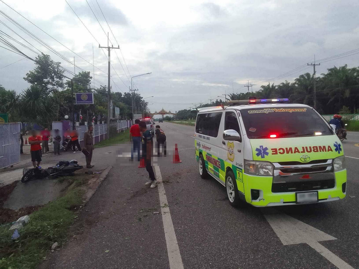 หนุ่มวัย 30 ปีขี่รถจักรยานยนต์เสียหลักชนเสาไฟส่องสว่าง เสียชีวิตริมถนนสายสมเด็จ - มุกดาหาร