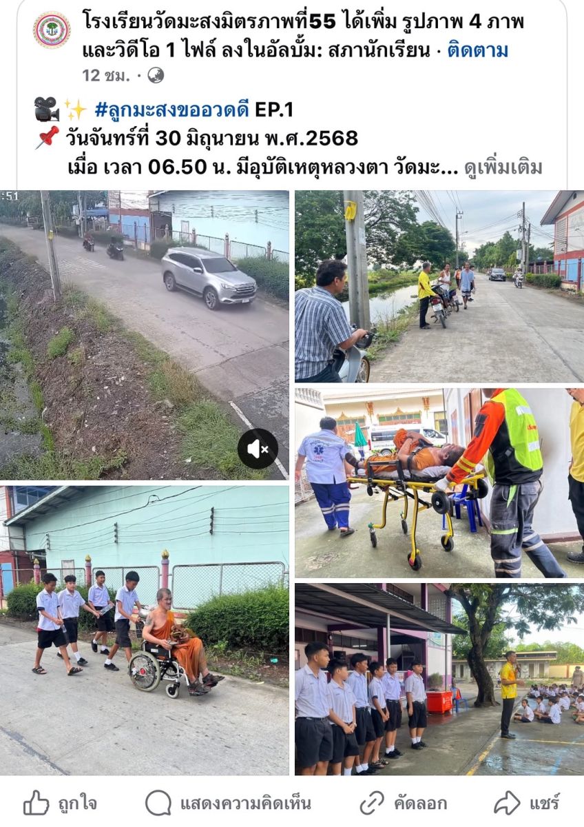 กรณีเฟซบุ๊กโรงเรียนวัดมะสงมิตรภาพที่55 ได้โพสต์คลิป รูปภาพ และวิดีโอ #ลูกมะสงขออวดดี EP.1 เป็นภาพเด็กนักเรียนของ โรงเรียนวัดมะสงมิตรภาพที่ 55 ช่วยชีวิตพระสงฆ์ป่วยนั่งวีลแชร์ ตกลงไปในคลองหน้าโรงเรียน เหตุเกิดเมื่อวันจันทร์ที่ 30 มิถุนายน พ.ศ.2568 เวลา 06.50 น.