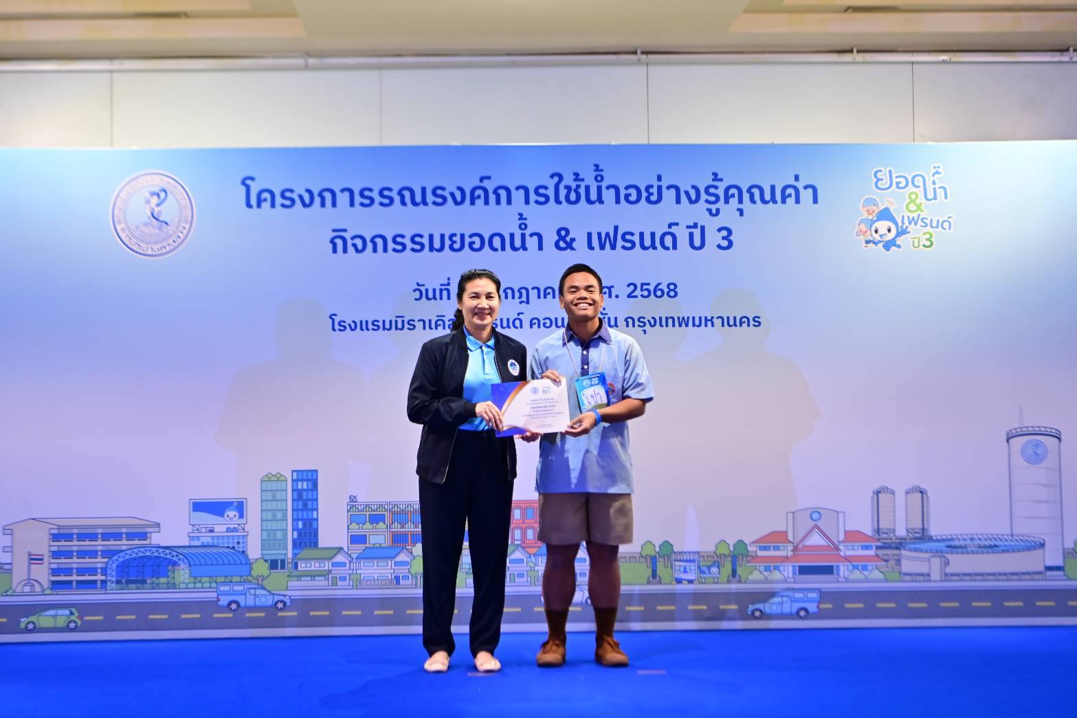 กิจกรรม “ยอดน้ำ & เฟรนด์” ปี 3 มีวัตถุประสงค์เพื่อส่งเสริมการใช้น้ำอย่างรู้คุณค่า และร่วมอนุรักษ์ทรัพยากรน้ำและสิ่งแวดล้อม ตลอดจนการสร้างความรู้ความเข้าใจเกี่ยวกับการใช้น้ำให้เกิดประโยชน์สูงสุดให้กับนักเรียน รวมถึงบุคลากรในโรงเรียน เพื่อให้เกิดการตระหนักรู้ถึงคุณค่าของทรัพยากรน้ำ ตลอดจนปรับเปลี่ยนพฤติกรรมการใช้น้ำในชีวิตประจำวันให้ถูกวิธี และช่วยเผยแพร่ความรู้ไปสู่ครอบครัว และชุมชนใกล้เคียง ซึ่งจะเป็นส่วนหนึ่ง ที่จะช่วยอนุรักษ์ทรัพยากรน้ำอย่างยั่งยืน ภายในงาน มีการบรรยายเรื่อง “How to...สร้างคลิป TikTok อย่างไรให้เป็นไวรัล” โดย ภญ.โสภา พิมพ์สิริพานิชย์ หรือคุณโซอี้ Digital Shortcut และกิจกรรม Workshop ให้ความรู้เกี่ยวกับกระบวนการผลิตน้ำประปา การใช้น้ำอย่างรู้คุณค่า การใช้อุปกรณ์ประหยัดน้ำ ซึ่งนอกจากน้อง ๆ จะได้รับความรู้แล้ว ยังได้ความสนุกจากการทำกิจกรรม เพื่อให้น้อง ๆ นักเรียนได้นำความคิดไปต่อยอด และสร้างสรรค์คลิป TikTok ส่งเข้าประกวด ภายใต้หัวข้อ “How to Save…เซฟน้ำอย่างไรให้ยั่งยืน” ชิงทุนการศึกษามูลค่ากว่า 175,000 บาท โดยจะประกาศผลและมอบรางวัลในวันที่ 20 สิงหาคม 2568 สามารถติดตามรายละเอียดเพิ่มเติมได้ที่เฟซบุ๊กแฟนเพจ "รวมพลคนประหยัดน้ำ"