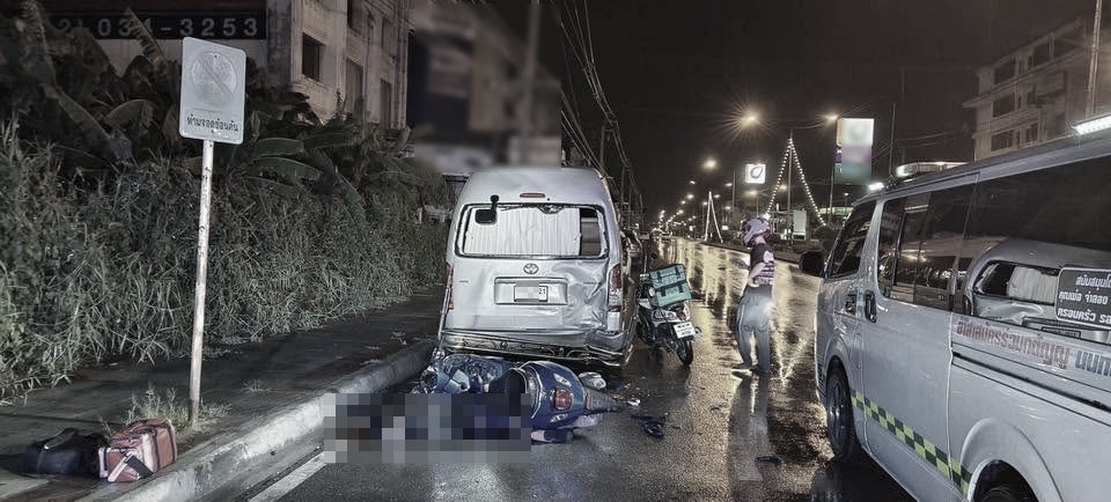 หนุ่มขี่รถจักรยานยนต์เสียหลักชนกับรถตู้ เสียชีวิตกลางถนนบางกรวย - ไทรน้อย จ.นนทบุรี