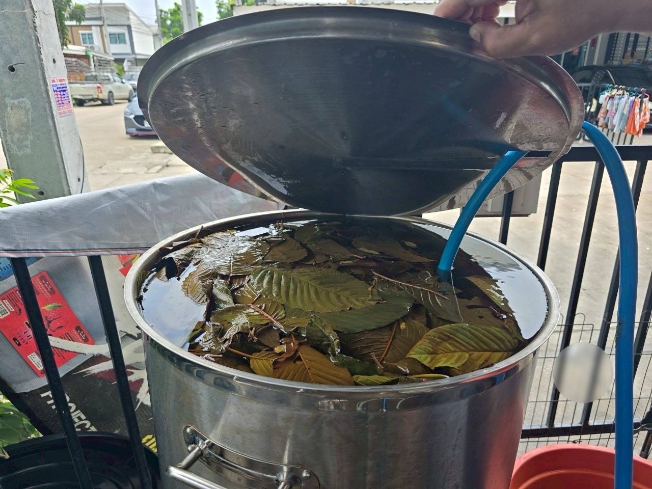 3.1 ถังสแตนเลสขนาด 120 ลิตร ภายในบรรจุน้ำต้มใบกระท่อม จำนวน 2 ถัง