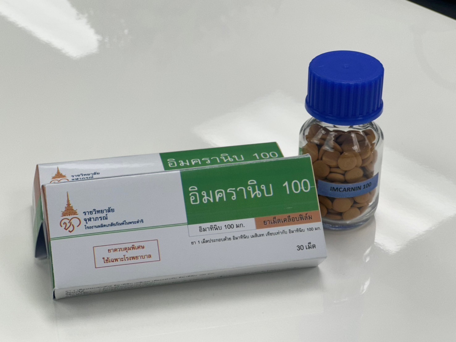 สำหรับ “ยาอิมครานิบ ๑๐๐” คือ ยารักษาแบบมุ่งเป้า ที่ยับยั้งการทำงานของเอนไซม์ Tyrosine kinase ที่สามารถยับยั้งการเติบโตและการกระจายของเซลล์มะเร็ง ทำให้สามารถควบคุมโรคได้อย่างมีประสิทธิภาพ และลดผลข้างเคียงเมื่อเทียบกับเคมีบำบัดแบบเดิม ซึ่งสามารถใช้รักษาโรคมะเร็งได้หลายประเภท เช่น โรคมะเร็งเม็ดเลือดขาวเรื้อรังชนิดซีเอ็มแอล มะเร็งเม็ดเลือดขาวเฉียบพลันชนิดฟิลาเดลเฟียบวก มะเร็งเนื้อเยื่อในระบบทางเดินอาหาร (GIST) มะเร็งผิวหนังชนิดหายาก (DFSP) แม้ว่ายาอิมมาทินิบนี้ จะสามารถเบิกจ่ายจากกองทุนสุขภาพได้ในหลายโรคแล้วก็จริง แต่ยังมีข้อจำกัดในบางโรค และบางระยะของโรคที่ยังไม่สามารถเบิกจ่ายจากกองทุนสุขภาพในปัจจุบัน การผลิตได้เองในประเทศ จะช่วยแก้ปัญหาข้อจำกัดนี้ โดยการขยายขอบเขตการใช้ยาให้ครอบคลุมทุกข้อบ่งชี้ของการรักษาซึ่งจะเพิ่มโอกาสในการควบคุมโรค ลดความทุกข์ทรมาน และช่วยให้ผู้ป่วยมีคุณภาพชีวิตที่ดีขึ้นอย่างแท้จริง ทั้งนี้ โรงพยาบาลจุฬาภรณ์ โดยศูนย์มะเร็งวิทยา ได้พิจารณานำยา "อิมครานิบ ๑๐๐" มาใช้ในฐานะโรงพยาบาลเฉพาะทางด้านโรคมะเร็ง ได้ทำหน้าที่เป็นตัวกลางที่สำคัญในการเชื่อมโยงองค์ความรู้ด้านวิทยาศาสตร์การแพทย์และศักยภาพของการผลิตยาคุณภาพสูงในประเทศ ไปสู่การนำไปใช้จริงกับผู้ป่วยอย่างเป็นระบบ นอกจากนี้ โรงพยาบาลยังมีความพร้อมในด้านระบบบริการ การจัดการยา และการติดตามข้อมูลผลลัพธ์ทางคลินิก โดยทำงานประสานร่วมกันระหว่างแพทย์ เภสัชกร และทีมสนับสนุน เพื่อให้การนำร่องนี้เกิดประสิทธิภาพและความปลอดภัยโดยคำนึงถึงประโยชน์สูงสุดของผู้ป่วยตั้งแต่เดือนกรกฎาคม ๒๕๖๘ เป็นต้นไป ความสำเร็จนี้นับเป็นพระกรุณาธิคุณที่ไม่เพียงช่วยเหลือประชาชนคนไทยให้พ้นจากทุกข์ภัยของโรคมะเร็งเท่านั้น แต่ยังเป็นการพัฒนาองค์ความรู้เพื่อเสริมสร้างทักษะความชำนาญด้านการพัฒนาตำรับ การผลิต การควบคุมคุณภาพ การประกันคุณภาพ การทดสอบทางเภสัชวิทยา และการขึ้นทะเบียนยารักษาโรคมะเร็งให้แก่บุคลากรและองค์กรที่เกี่ยวข้อง เป็นการยกระดับความสามารถด้านเภสัชอุตสาหการและเทคโนโลยีเภสัชกรรมและบุคลากรทางด้านนี้ของประเทศไทยให้พร้อมรองรับการผลิตและการวิจัยยารักษาโรคมะเร็งตำรับอื่นที่จะเกิดขึ้นในอนาคตต่อไป สร้างความมั่นคงทางยาให้กับประเทศในระยะยาวเพื่อยกระดับคุณภาพชีวิตของประชาชนไทยอย่างยั่งยืน
