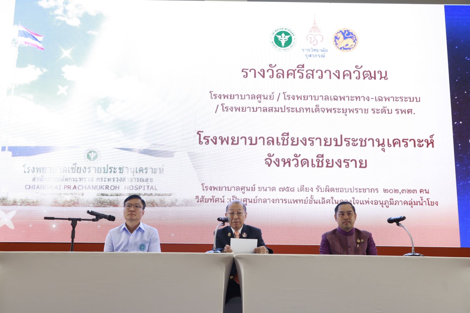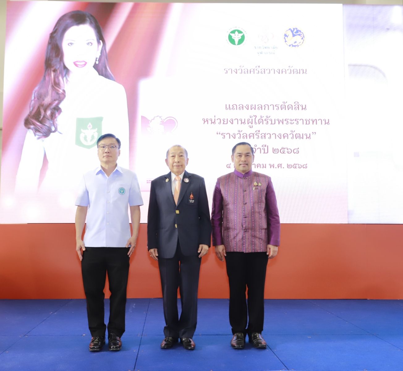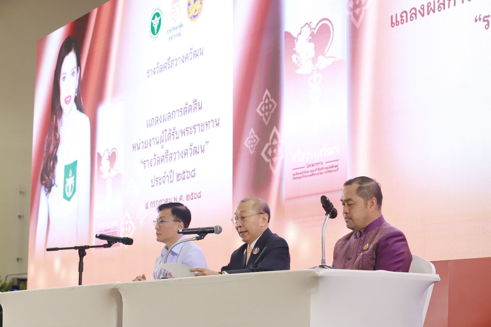 ในด้านรางวัลเทิดพระเกียรติสำหรับหน่วยงานภายในประเทศ ราชวิทยาลัยจุฬาภรณ์ โดย ดร.ฐากูร พานิช รักษาการรองเลขาธิการราชวิทยาลัยจุฬาภรณ์ ร่วมด้วย ดร.นายแพทย์โสภณ เอี่ยมศิริถาวร หัวหน้าผู้ตรวจราชการกระทรวงสาธารณสุข และนายศิริพันธ์ ศรีกงพลี รองอธิบดีกรมส่งเสริมการปกครองท้องถิ่น กระทรวงมหาดไทย ได้ร่วมแถลงผลการตัดสินหน่วยงานผู้ได้รับพระราชทานรางวัลศรีสวางควัฒน ประจำปีพุทธศักราช ๒๕๖๘ เพื่อน้อมสำนึกในพระกรุณาธิคุณ ศาสตราจารย์ ดร. สมเด็จเจ้าฟ้าฯ กรมพระศรีสวางควัฒน วรขัตติยราชนารี และสืบสานพระปณิธานในการส่งเสริมให้โรงพยาบาลทั่วประเทศ พัฒนาการบริการที่มีประสิทธิภาพแก่ประชาชนอย่างต่อเนื่องเพื่อช่วยเหลือผู้ป่วยในทุกถิ่นฐาน โดยมีการสรรหาและคัดเลือกหน่วยงานบริการด้านสาธารณสุขที่ให้บริการทางการแพทย์อย่างมีมาตรฐาน มีความทุ่มเทในการพัฒนาระบบบริการประชาชนที่เป็นเลิศ อุทิศตนในการปฏิบัติงานด้วยความเสียสละ อุตสาหะ และทุ่มเท สำหรับผลการตัดสินหน่วยงานผู้ได้รับพระราชทาน “รางวัลศรีสวางควัฒน” ประจำปี ๒๕๖๘ แบ่งตามประเภทโรงพยาบาลได้แก่ รางวัลชนะเลิศ ประเภทโรงพยาบาลศูนย์ และ โรงพยาบาลสมเด็จพระยุพราช (ระดับ รพศ.) หน่วยงานที่ได้รับรางวัล ได้แก่ โรงพยาบาลเชียงรายประชานุเคราะห์ อำเภอเมืองเชียงราย จังหวัดเชียงราย เป็นโรงพยาบาลศูนย์ ขนาด ๗๕๘ เตียง ครอบคลุมครบทุกด้านการรักษา สามารถให้การวินิจฉัย การรักษา และการป้องกันโรคอย่างครบวงจร โรงพยาบาลเชียงรายประชานุเคราะห์ดำเนินงานด้วยวิสัยทัศน์ในการเป็นศูนย์กลางการแพทย์ชั้นเลิศในดวงใจแห่งอนุภูมิภาคลุ่มน้ำโขง รางวัลชนะเลิศประเภทโรงพยาบาลทั่วไปและ โรงพยาบาลสมเด็จพระยุพราช (ระดับ รพท.) ได้แก่ โรงพยาบาลนราธิวาสราชนครินทร์ อำเภอเมืองนราธิวาส จังหวัดนราธิวาส เป็นโรงพยาบาลทั่วไป ขนาด ๔๑๓ เตียง โดยเป็นโรงพยาบาลที่มีการพัฒนาระบบบริการโรคหลอดเลือดสมองที่บูรณาการได้อย่างครอบคลุม นำไปสู่การสร้างผลลัพธ์การลดอัตราตายอย่างเด่นชัด สามารถลดความพิการ และยกระดับคุณภาพชีวิตผู้ป่วยได้อย่างเป็นรูปธรรม เชื่อมระบบสุขภาพเข้ากับบริบทที่ท้าทายทางศาสนาและวัฒนธรรมของบริบทพื้นที่ โดยระดมพลังเครือข่ายบริการสุขภาพ เครือข่ายชุมชน เครือข่ายผู้นำศาสนา เครือข่ายองค์กรปกครองส่วนท้องถิ่น และเครือข่ายภาคีวิชาชีพให้เกิดประสิทธิภาพสูงสุดด้วยวิสัยทัศน์ในการโรงพยาบาลคุณภาพ ชั้นนำ บริการทันสมัย เครือข่ายเข้มแข็ง ประชาชนสุขภาพดี บุคลากรมีความสุข รางวัลชนะเลิศประเภทโร