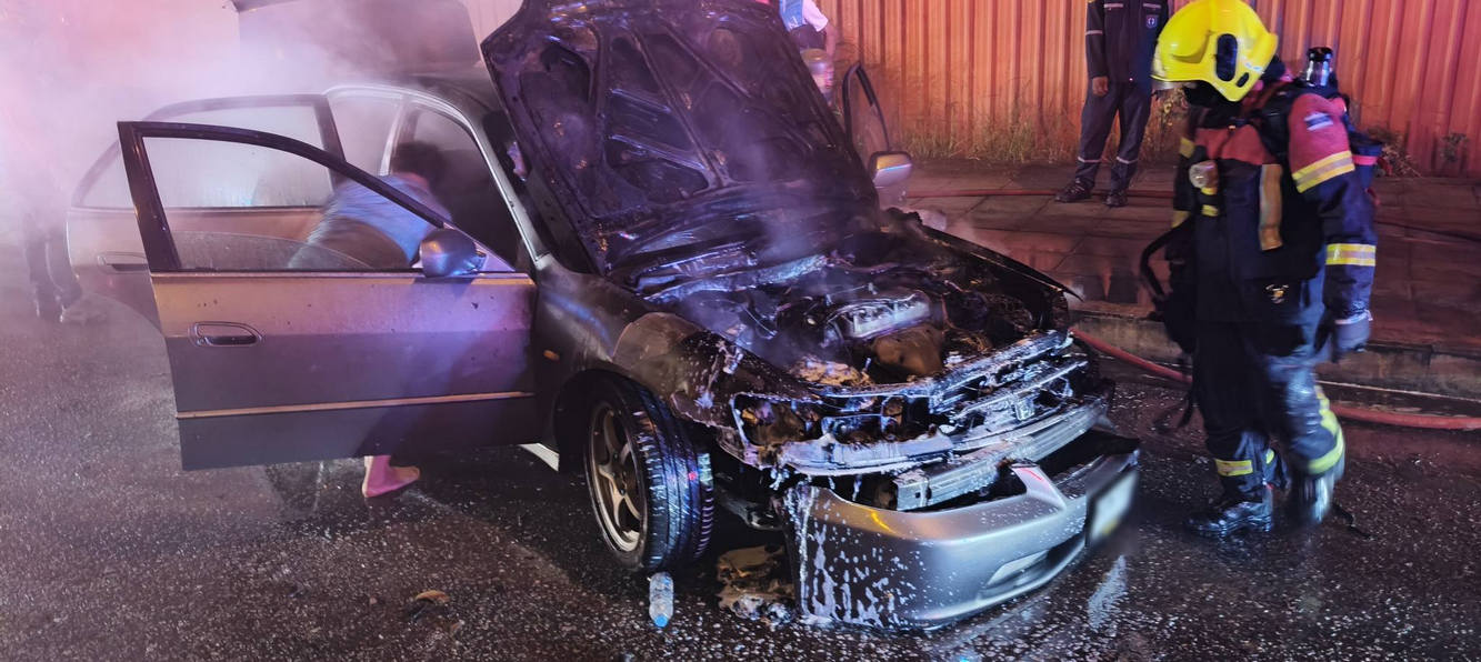 ลักษณะที่เกิดเหตุเป็นรถยนต์นั่งส่วนบุคคล ชนิดเก๋ง สีเขียว ป้ายทะเบียน กรุงเทพมหานคร รถใช้น้ำมันเบนซินเป็นเชื้อเพลิง เพลิงลุกไหม้เสียหายบริเวณห้องเครื่องลุกลามห้องโดยสาร อาสาสมัครใช้น้ำทำการดับเพลิงสงบ ก่อนรถดับเพลิงถึงที่เกิดเหตุ และทางเจ้าหน้าที่ใช้น้ำทำการระบายความร้อน