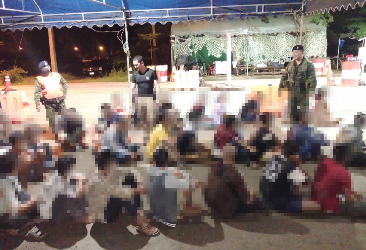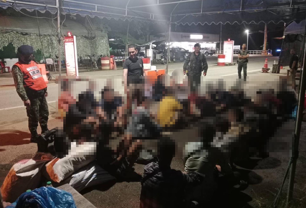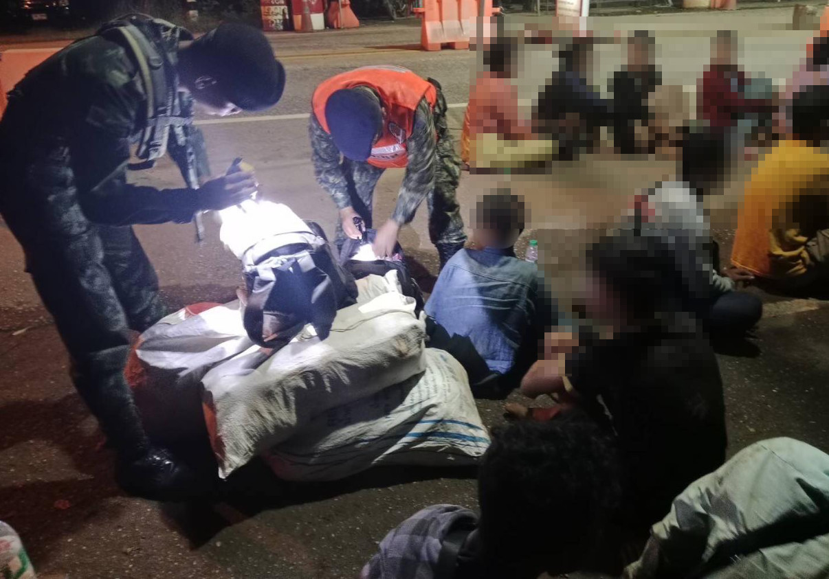 กระทั่ง 01.00 น. ขณะที่เจ้าหน้าที่ปฏิบัติงาน บริเวณ จุดตรวจร่วมสามแยกทองผาภูมิ สังเกตพบรถยนต์ต้องสงสัยตามที่ได้รับแจ้งจากแหล่งข่าว ขับมาจาก อ.สังขละบุรี มุ่งหน้า อ.ทองผาภูมิ จึงได้ให้สัญญาณหยุดรถเพื่อทำการตรวจสอบ แต่ในขณะที่เจ้าหน้าที่กำลังจะเข้าทำการตรวจสอบนั้น รถยนต์คันดังกล่าวได้ทำการเร่งเครื่องยนต์หลบหนีออกไปจากด่านตรวจ เจ้าหน้าที่จึงได้เร่งติดตามไปจนกระทั่งพบรถยนต์กระบะ หมายเลขทะเบียน 2ฒผ 2929 กรุงเทพมหานคร จอดทิ้งไว้บริเวณริมถนน บ.สหกรณ์นิคม ม.1 ต.สหกรณ์นิคม อ.ทองผาภูมิ จากนั้นเจ้าหน้าที่ฝ่ายความมั่นคงจึงได้ทำการตรวจสอบภายในรถยนต์คันดังกล่าวอย่างละเอียด พบ กลุ่มบุคคลคล้ายต่างด้าวผิดกฎหมาย จำนวน 27 คน (ชาย 19 คน และหญิง 8 คน) ต่อมาเจ้าหน้าที่ได้ดำเนินการตรวจสอบเอกสารประจำตัวที่ทางราชการออกให้ แต่กลุ่มบุคคลดังกล่าวไม่สามารถสื่อสารภาษาไทยได้ และไม่สามารถแสดงเอกสารที่ทางราชการออกให้ได้ จึงควบคุมตัวกลุ่มบุคคลต่างด้าวไว้ทั้งหมด