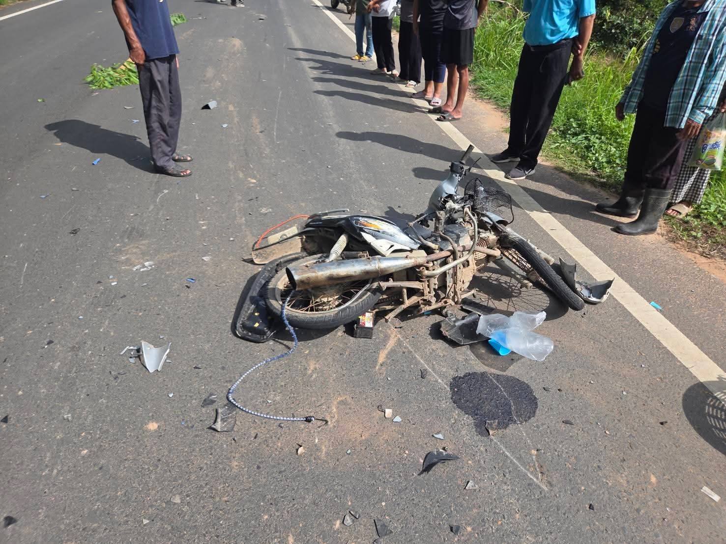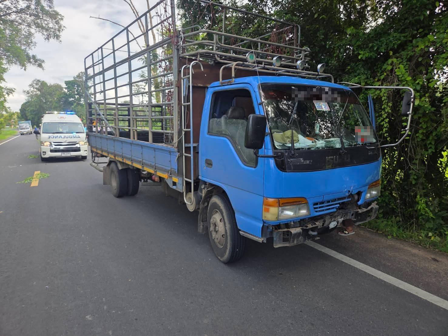 จ.สุรินทร์ รถบรรทุกชนกับรถจักรยานยนต์ กลางถนนเส้นบ้านโคกไทร-บ้านดาร์ มีผู้บาดเจ็บอาการสาหัส ก่อนไปเสียชีวิตที่โรงพยาบาล