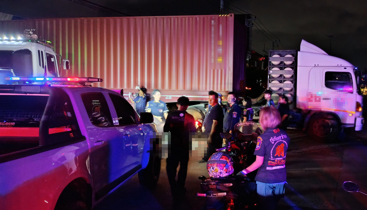 หนุ่มสุรินทร์ขับขี่รถจักรยานยนต์ พุ่งเข้ากลางลำรถเทรลเลอร์ เสียชีวิตกลางถนนเมืองใหม่ จ.ชลบุรี