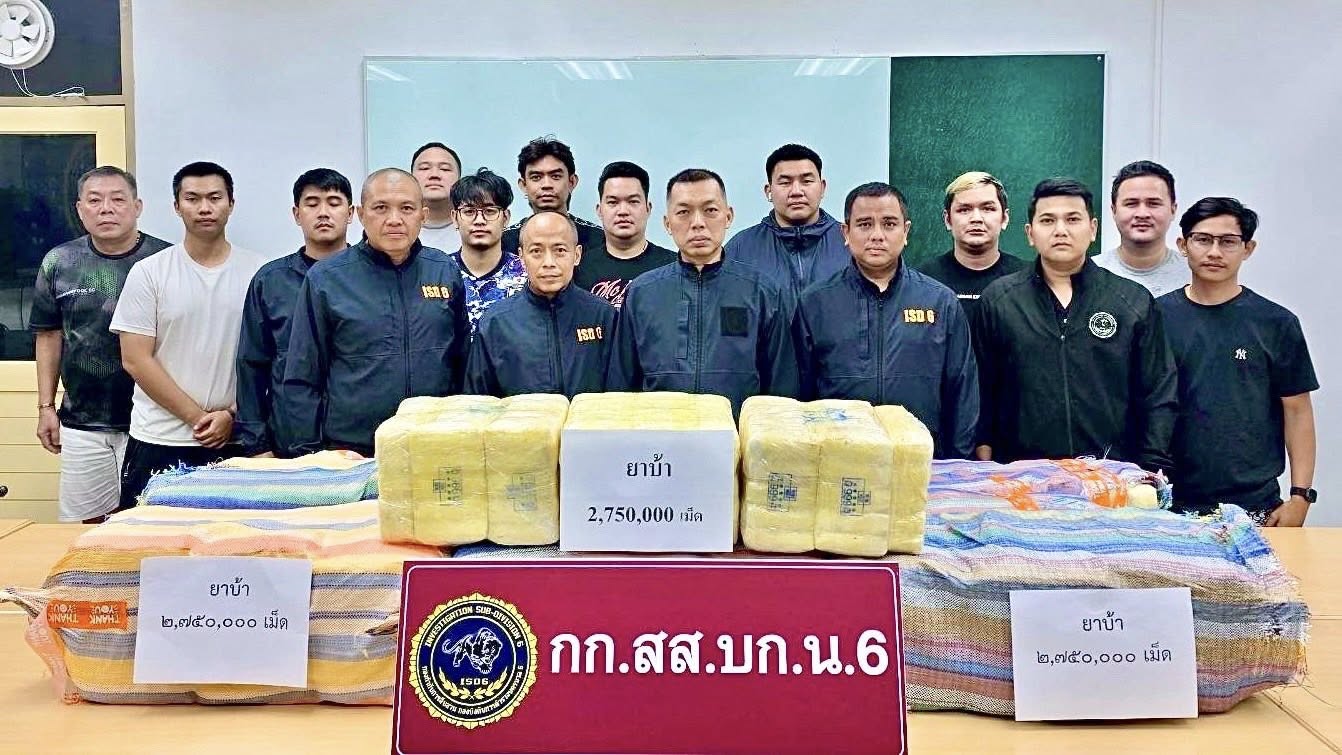 เมื่อเวลา 01.40 น. วันที่ 8 กรกฎาคม 2568 ชุดสืบสวน กก.สส.บก.น.6 นำโดย พ.ต.อ.เชิดศักดิ์ รอดเข็ม ผกก.สส.บก.น.6 พร้อมด้วย พ.ต.ท.ประเสริฐ ชะเอมทอง, พ.ต.ท.วิสิทธิ์ สายบัวทอง, พ.ต.ท.กิตติศักดิ์ จุติวรกุล, พ.ต.ท.ชูชีพ วงษ์บุญเพ็ญ, พ.ต.ต.ปัณณวัชร์ จิรัฐธรรมฤทธิ์ และเจ้าหน้าที่ชุดสืบสวน ร่วมกับหน่วยข่าวกรองกองทัพบก สนธิกำลังปฏิบัติการจับกุม ชาย อายุ 36 ปี ชาวจังหวัดหนองบัวลำภู พร้อมของกลางยาบ้า 2,750,000 เม็ด ซุกในกระสอบ 11 ใบ ซ่อนอยู่ในรถยนต์มิตซูบิชิ ปาเจโร่ สีดำ ทะเบียนกรุงเทพมหานคร