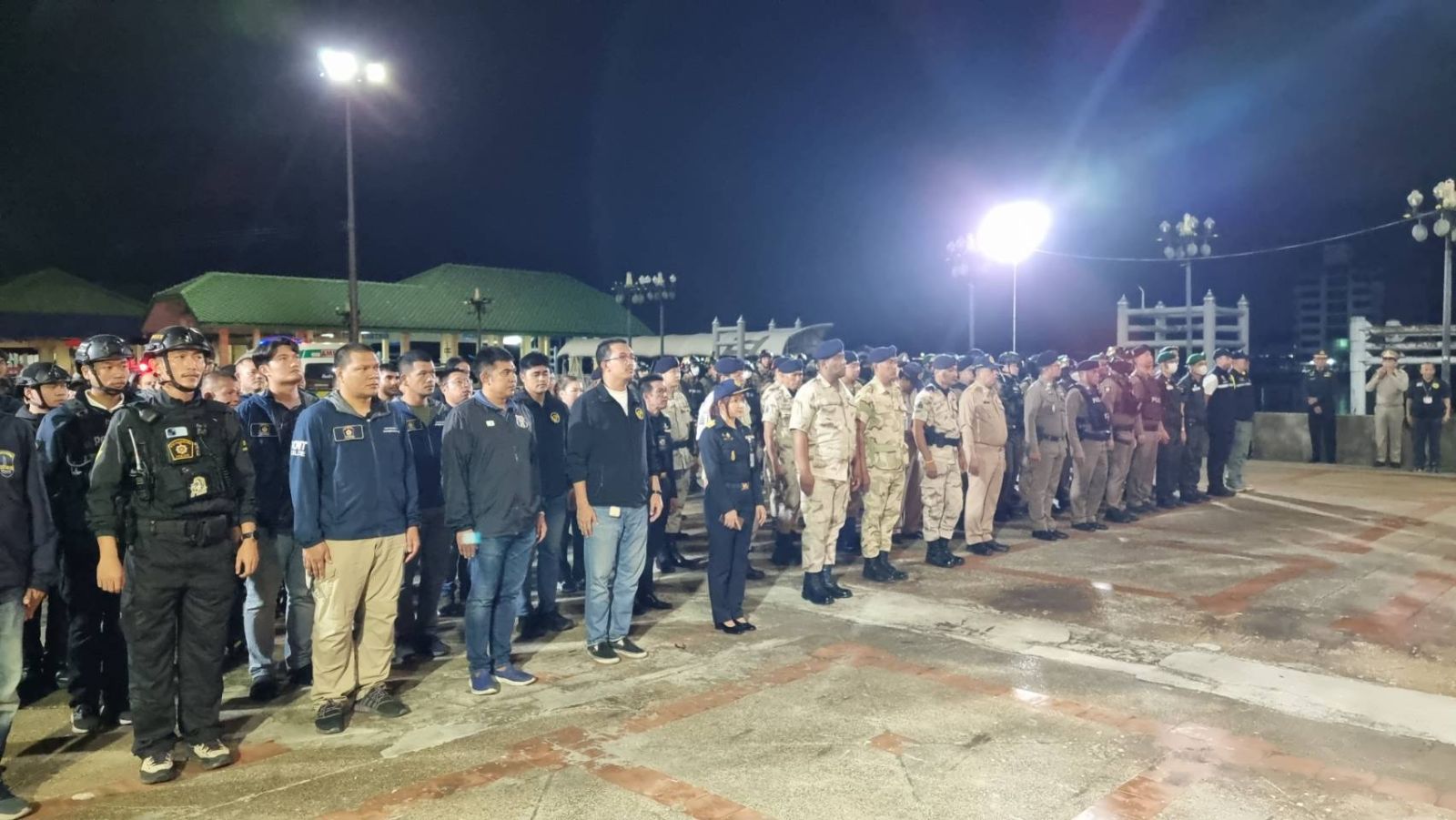 เมื่อเวลา 22.30 น.วันที่ 9 ก.ค. 68 ที่ริมเขื่อนท่าน้ำนนทบุรี อ.เมืองนนทบุรี นายกิตติศักดิ์ ตรงศิริ ผวจ.นนทบุรี พล.ต.ต.กิตติ์ธเนศ ธนนันท์ทวีสิน นายชุ้น ณัฐเดช กังสกุล ปลัดจังหวัดนนทบุรี พ.ต.อ.ปิยวุฒิ แก้วมณี รอง ผบก.จว.นนทบุรี พ.ต.อ.ชยชัย นาธนกาญจน์ ผกก.สภ.เมืองนนทบุรี พ.ต.อ.พิสุทธิ์ จันทรสุวรรณ ผกก.สภ.รัตนาธิเบศร์ พ.ต.อ.สมชาย แจ้งธรรมมา ผกก.สภ.บางศรีเมือง เจ้าหน้าที่ตำรวจทั้ง 3 สถานี พ.ต.อ.พัดธงทิว ดามาพงศ์ ผกก.ตม.จว.นนทบุรี ว่าที่ พ.ต.ท. ธนพล จันทร สว.ตม.จว.นนทบุรี พร้อมเจ้าหน้าที่ตม.จว.นนทบุรีน.ส.วรรณี วุฒิฤทธากุล นายทำเภอเมืองนนทบุรี พร้อมเจ้าหน้าที่ฝ่ายปกครองอำเภอเมืองนนทบุรี และกองร้อย อส.รักษาดินแดน เจ้าหน้าที่ กอ.ร.ม.น. เจ้าหน้าที่จัดหางานจังหวัด ร่วมปล่อยแถวระดมกวาดล้างอาชญากรรม จัดระเบียบสังคมและตรวจสถานบริการ เนื่องในวันอาสาฬหบูชา และวันเข้าพรรษา เพื่อเสริมสร้างความสงบเรียบร้อยของสังคมในวันสำคัญทางศาสนา เพื่อป้องกันเหตุอาชญากรรมในพื้นที่จ.นนทบุรี รวมทั้งการตรวจสถานบริการและสถานประกอบการคล้ายสถานบริการต่างๆในพื้นที่ เพื่อป้องกันการหลบหนีเข้าเมืองและการค้ามนุษย์