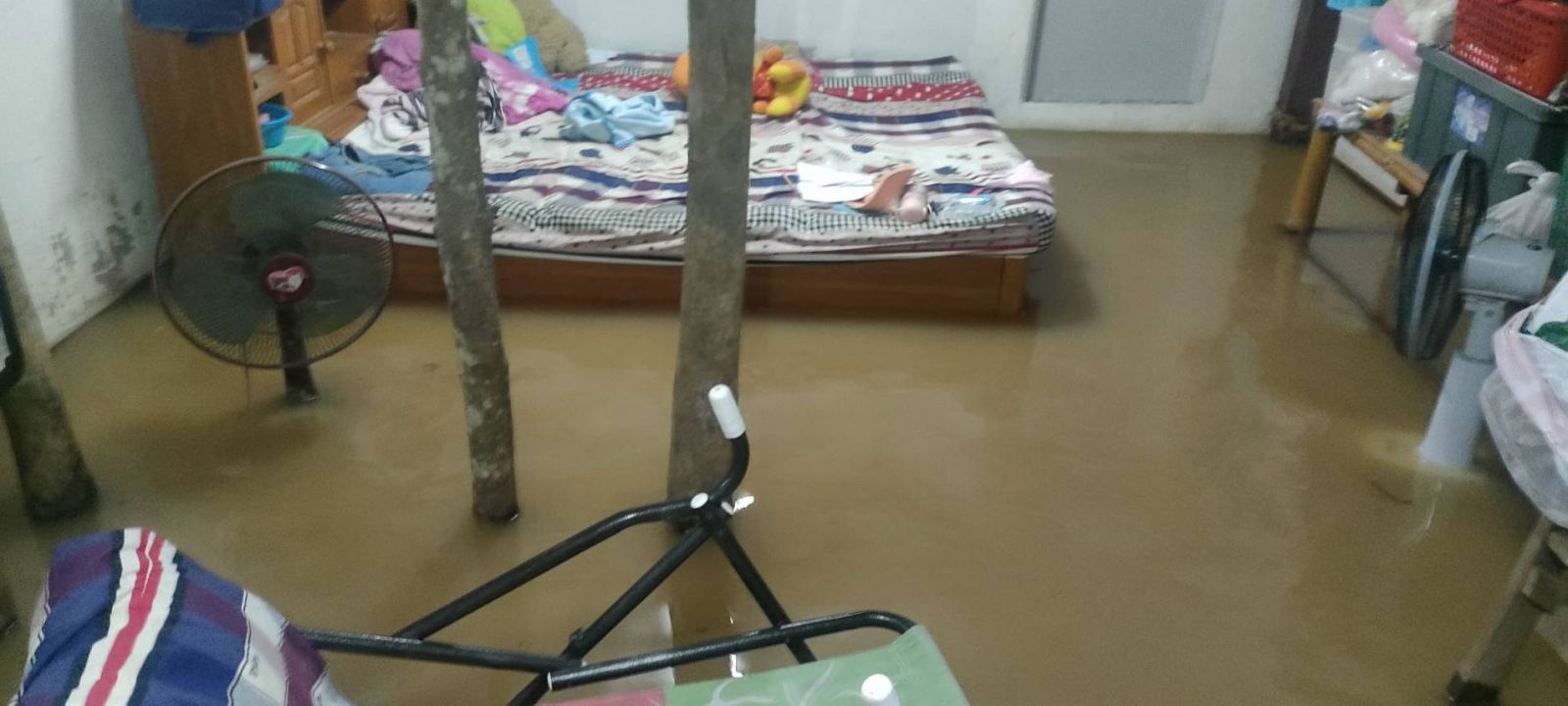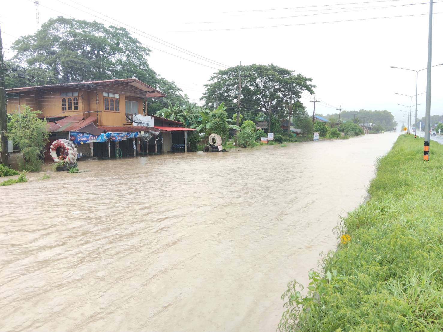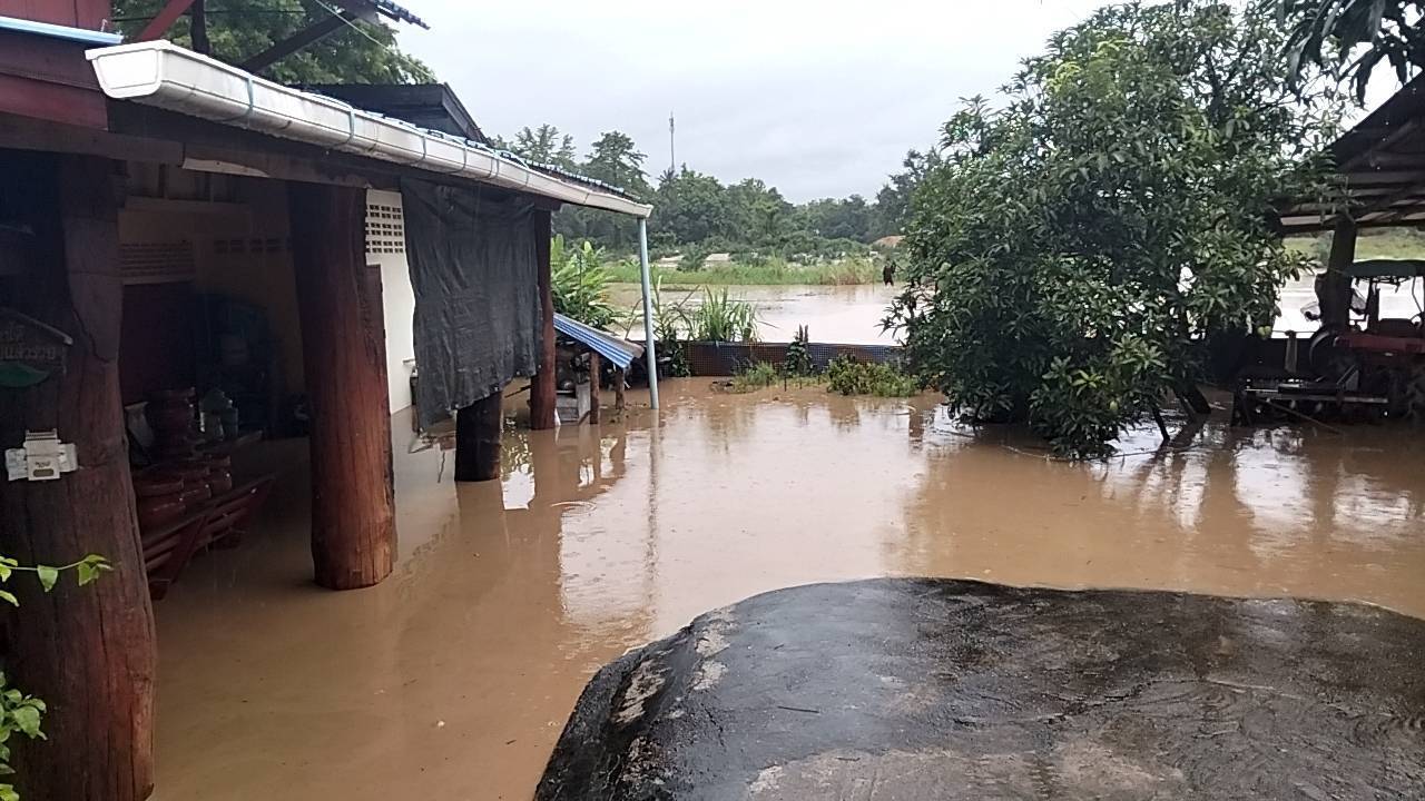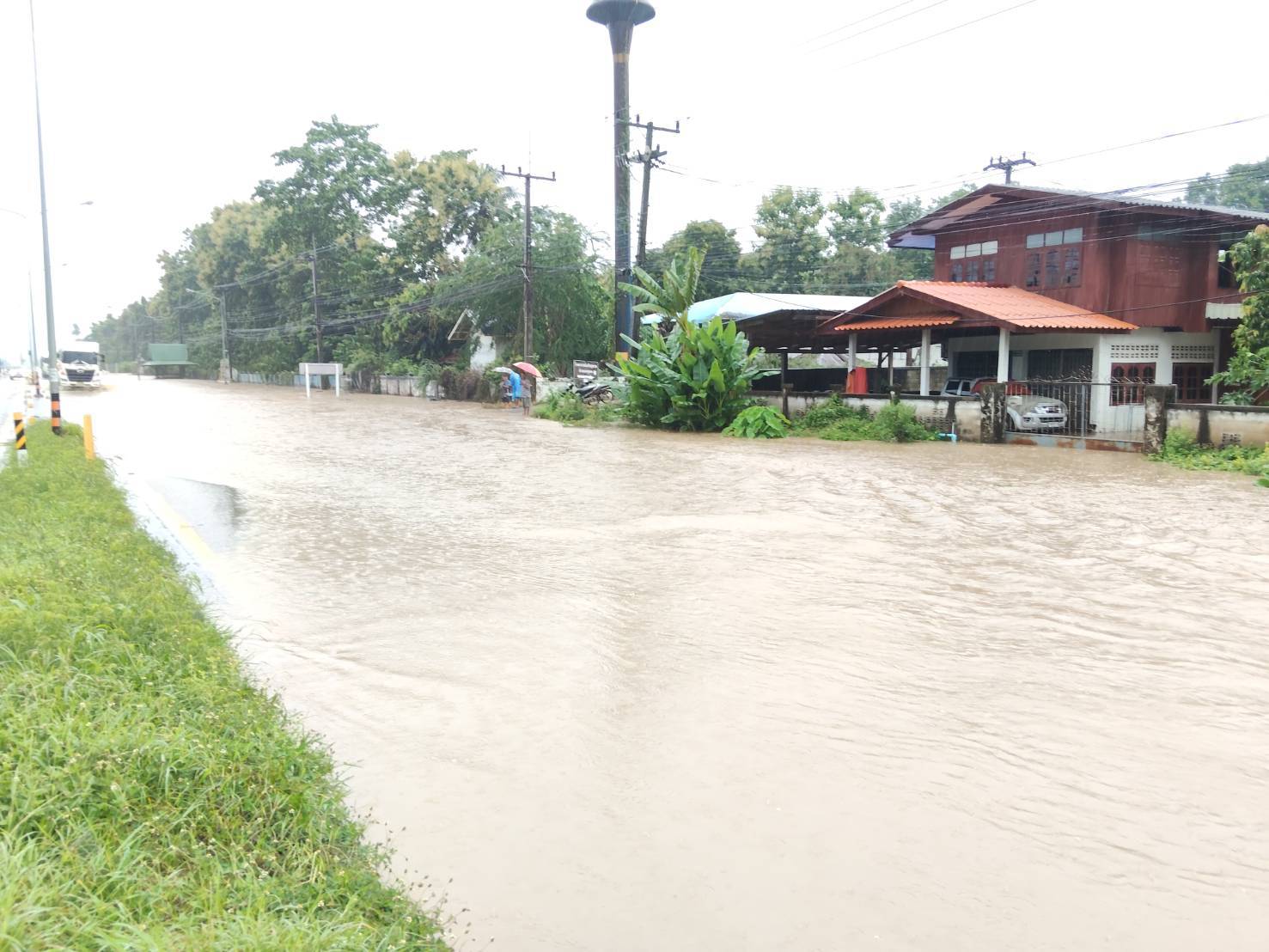 น้ำเข้าบ้านเรือนประชาชนบางส่วนและท่วมผิวทาง ที่ตั้งอยู่ที่ลุ่มต่ำริมน้ำ สูงประมาณ 20 ซม. ระดับน้ำแนวโน้มลดลง