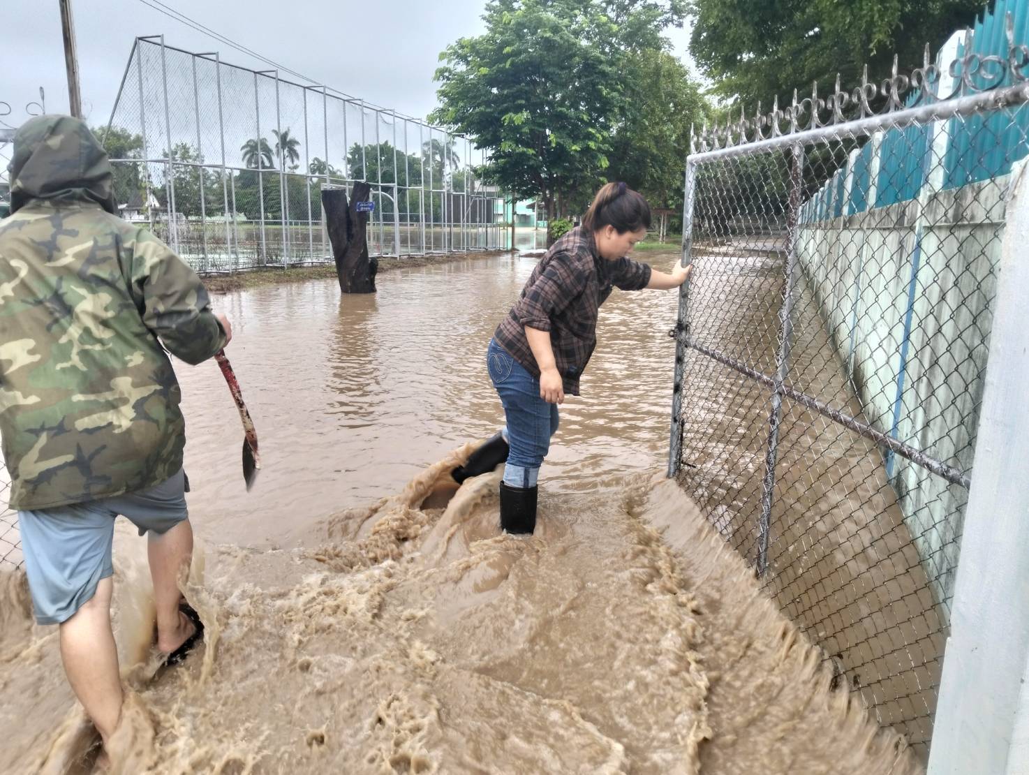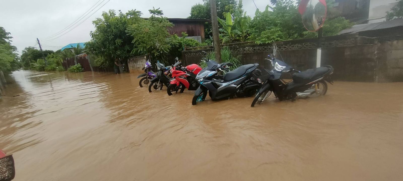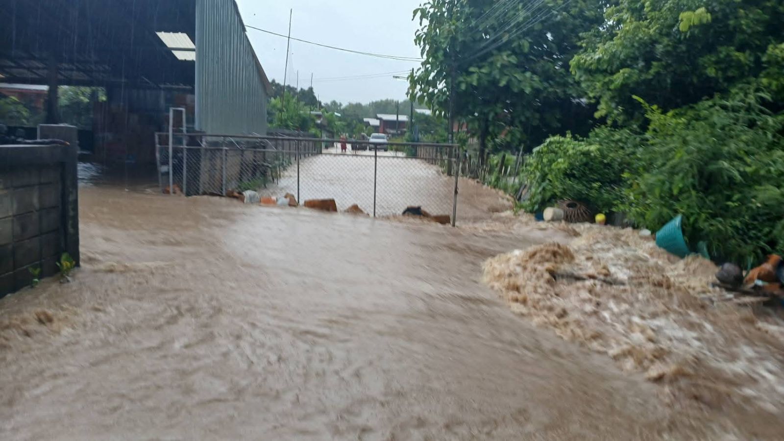 น้ำเข้าบ้านเรือนประชาชนบางส่วนและท่วมผิวทาง ที่ตั้งอยู่ที่ลุ่มต่ำริมน้ำ สูงประมาณ 20 ซม. ระดับน้ำแนวโน้มลดลง