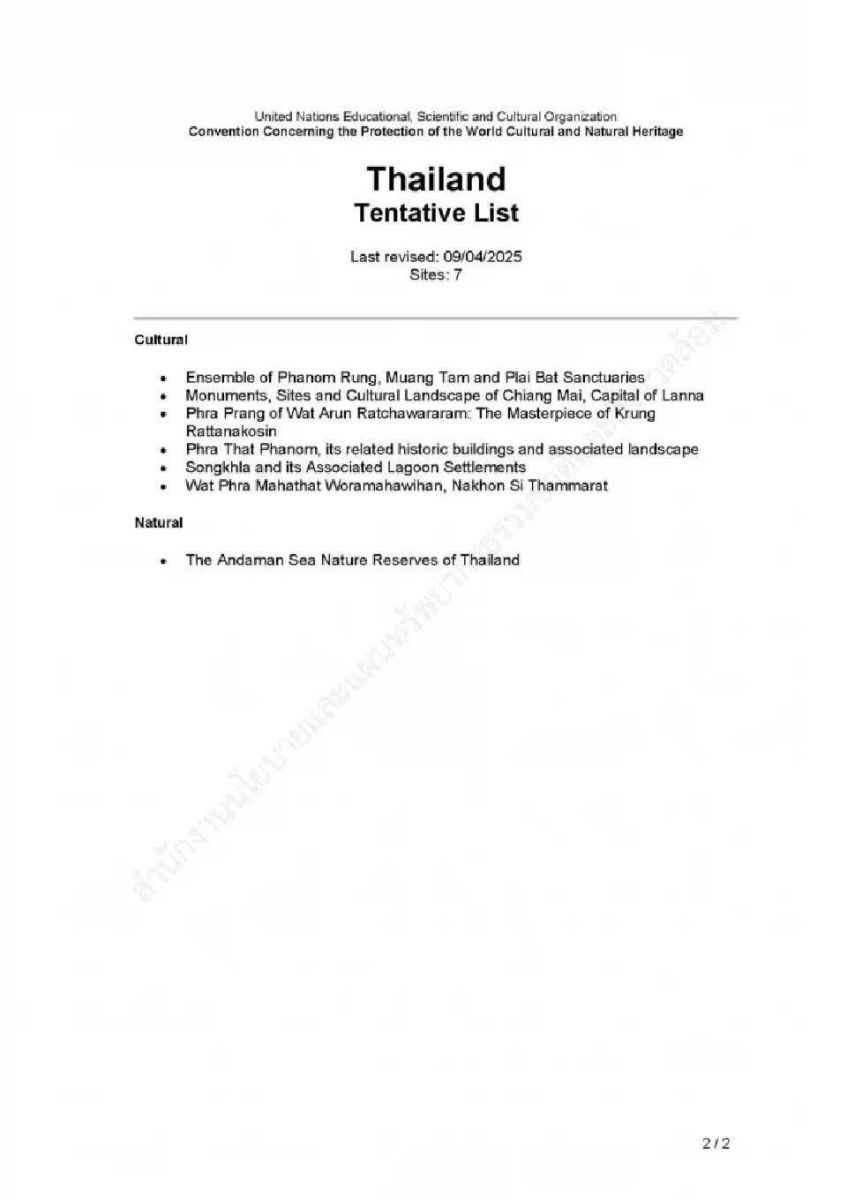 ทั้งนี้บัญชี Tentative List คือ รายชื่อแหล่งมรดก ที่ประเทศสมาชิก มีความตั้งใจจะเสนอชื่อเป็นมรดกโลก ในอนาคต โดยแต่ละประเทศ ต้องจัดทำและส่งรายชื่อเหล่านี้ ไปยังศูนย์มรดกโลกของยูเนสโก เพื่อแสดงเจตจำนง ในการอนุรักษ์ และเตรียมความพร้อม ทั้งในด้านเอกสาร การจัดการ และการปกป้องแหล่งมรดกนั้นๆ ก่อนเข้าสู่กระบวนการเสนอชื่ออย่างเป็นทางการ ในอนาคต