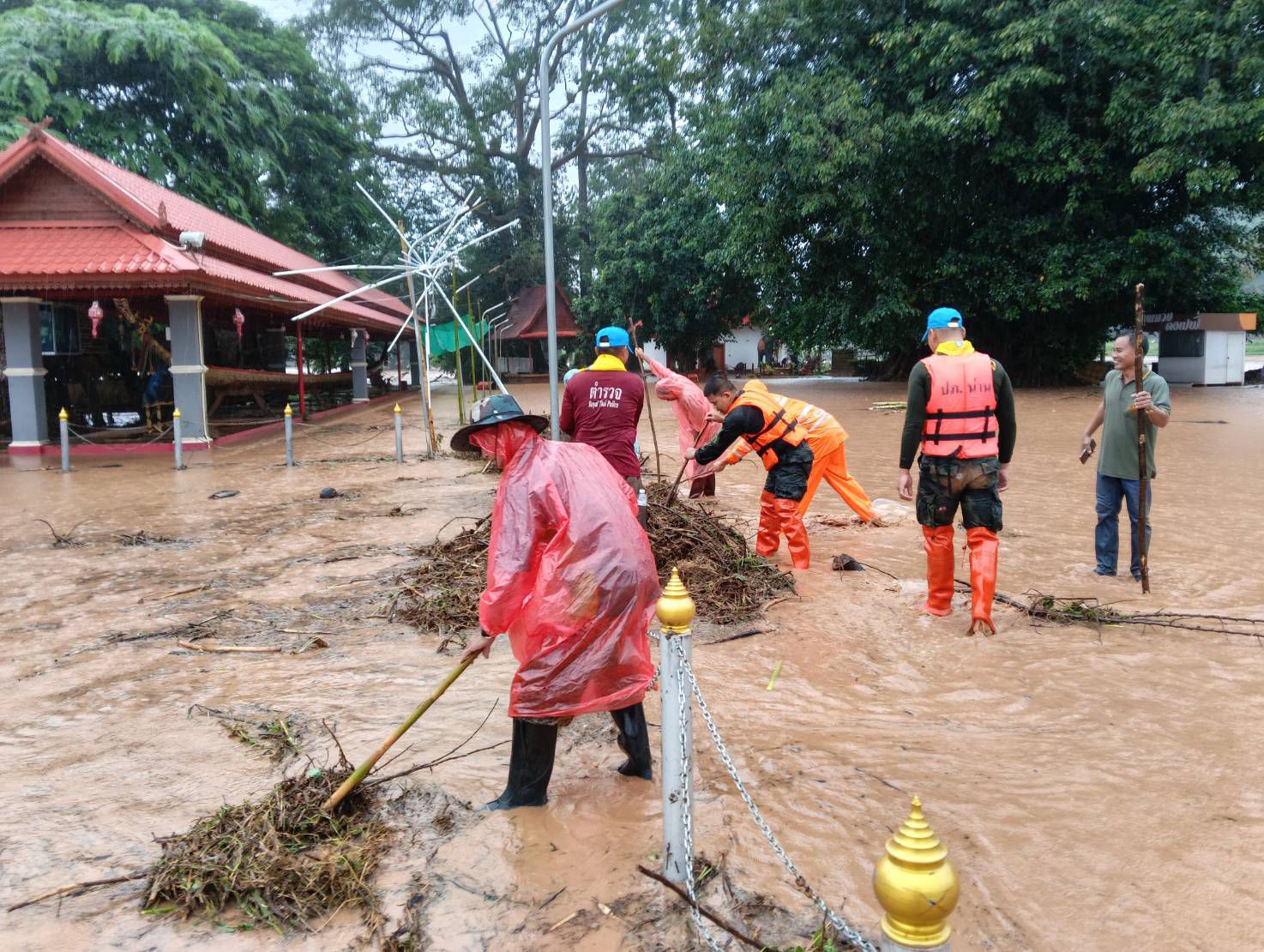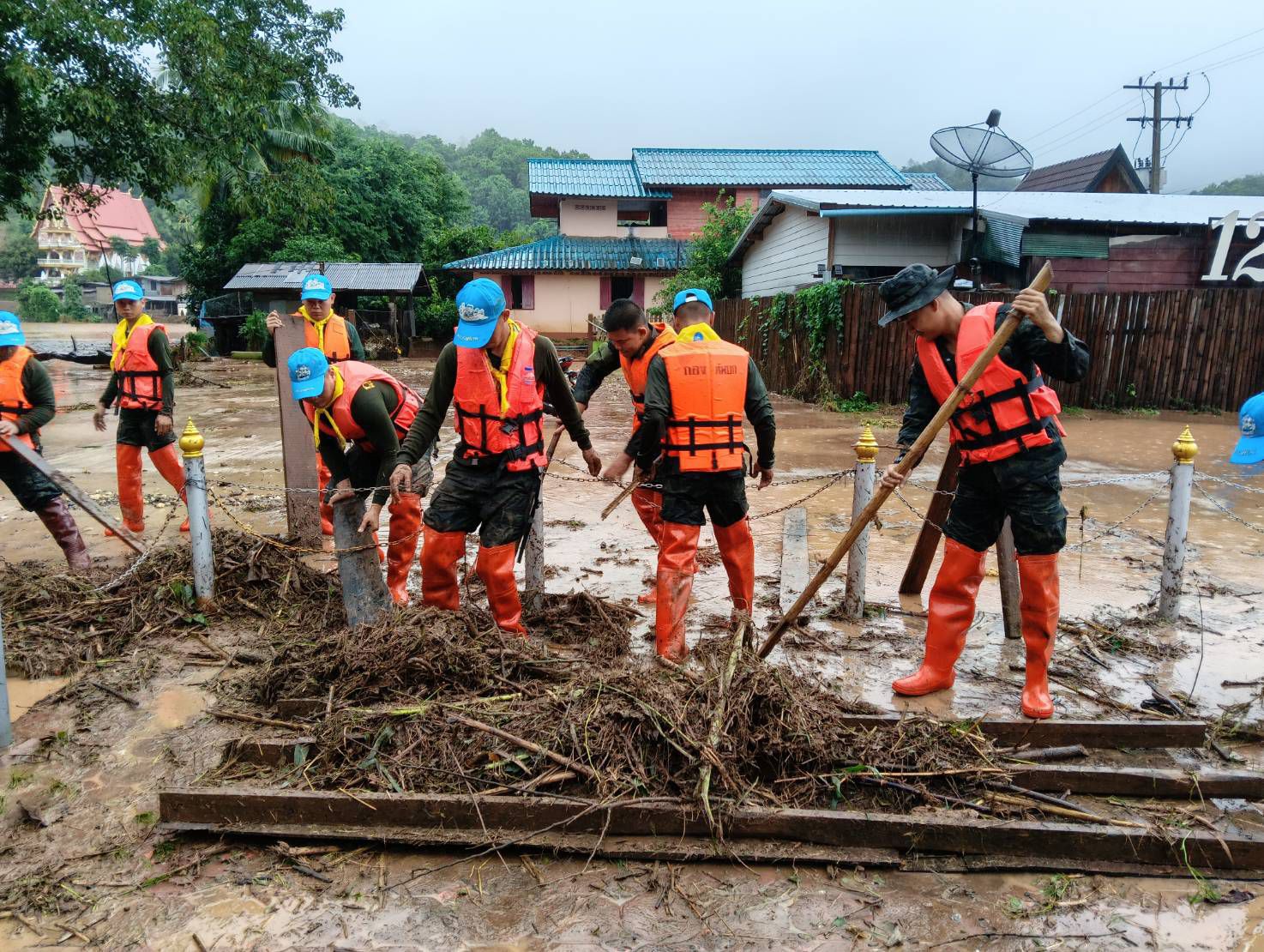 ในพื้นที่บ้านน้ำมวบ ตำบลน้ำมวบ อำเภอเวียงสา กำลังพลจากกองร้อยบรรเทาสาธารณภัยได้ลงพื้นที่ร่วมกับผู้นำชุมชน เพื่อเร่งให้ความช่วยเหลือประชาชน โดยดำเนินการอพยพผู้ประสบภัย เคลื่อนย้ายทรัพย์สิน และสนับสนุนการจัดระบบรักษาความปลอดภัยในพื้นที่เสี่ยงอย่างเร่งด่วน หลังพบว่าระดับน้ำเพิ่มสูงกว่า 1 เมตร ส่งผลให้ประชาชนกว่า 120 หลังคาเรือน หรือประมาณร้อยละ 60 ของหมู่บ้านได้รับผลกระทบ