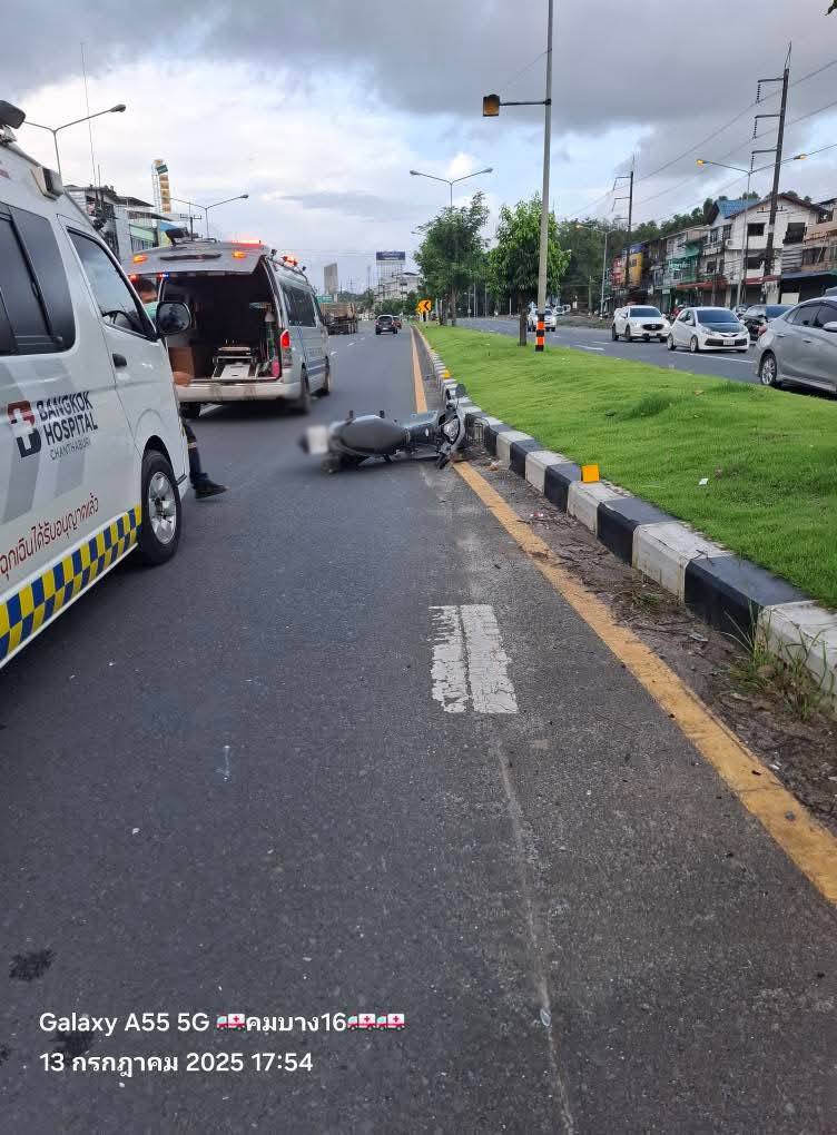 เมื่อวันที่ 13 กรกฎาคม 2568 เวลา 17.55 น. กู้ชีพกู้ภัยสว่างกตัญญูจันทบุรี รับแจ้งอุบัติเหตุ รถยนต์นั่งส่วนบุคคล ชนกับรถจักรยานยนต์ และมีผู้บาดเจ็บสาหัส บนถนนสุขุมวิท บริเวณใกล้เคียงตลาดวรรณการ ต.พลับพลา อ.เมือง จ.จันทบุรี
