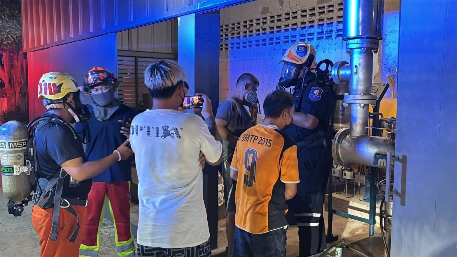 เจ้าหน้าที่ตำรวจ พร้อมด้วยหน่วยกู้ภัยมูลนิธิสว่างบริบูรณ์ธรรมสถานเมืองพัทยา รีบรุดตรวจสอบที่เกิดเหตุ โดยพบว่าพนักงานในโรงงานได้ออกมานอกอาคารเนื่องจากกลิ่นก๊าซแอมโมเนียฟุ้งกระจายไปทั่วบริเวณ ส่งผลให้แสบตาและระคายเคืองระบบทางเดินหายใจ ขณะเดียวกันกลิ่นฉุนยังลอยไปถึงตลาดใกล้เคียงและหมู่บ้านในรัศมีหลายร้อยเมตร สร้างความตื่นตระหนกแก่ประชาชนในพื้นที่ ทางเจ้าหน้าที่จึงประชาสัมพันธ์อพยพประชาชนที่อยู่ในละแวกใกล้เคียง ออกไปอยู่ในจุดที่ปลอดภัย