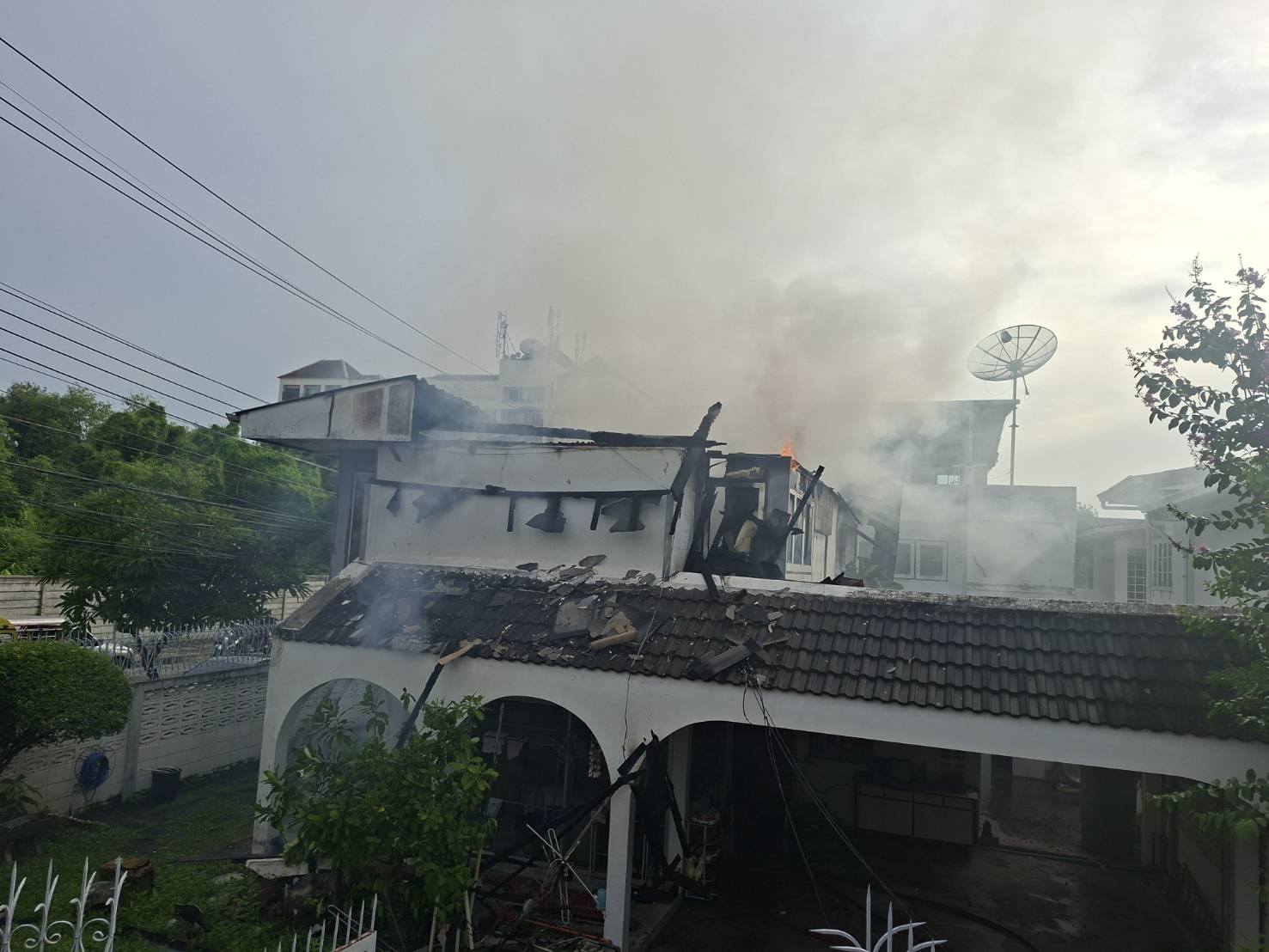 ลักษณะที่เกิดเหตุเป็นบ้านเดี่ยวคอนกรีต 2 ชั้น ใช้เป็นที่พักอาศัย ต้นเพลิงเกิดขึ้นที่ชั้นบน เพลิงลุกไหม้ชั้นบนเสียหายทั้งหมด พื้นที่เพลิงไหม้เสียหายโดยประมาณ 40 ตารางเมตร รถดับเพลิงใช้น้ำทำการดับเพลิงสงบ