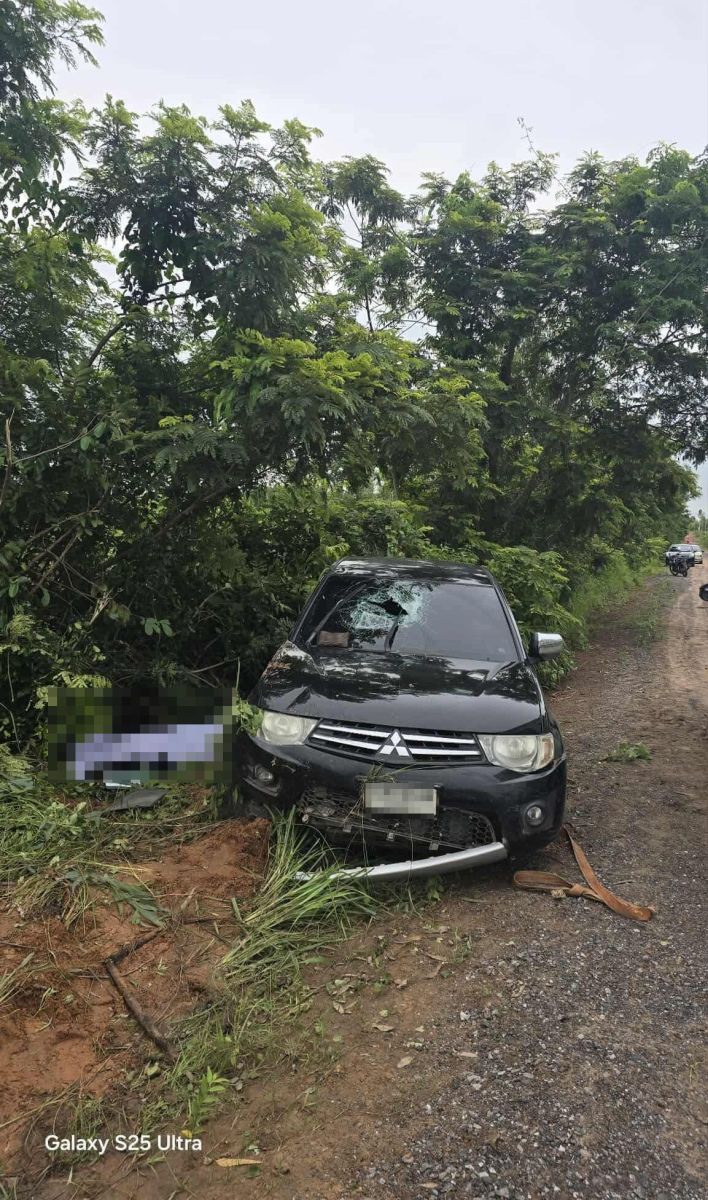 ที่เกิดเหตุ พบรถกระบะ มิตซูบิชิ สีดำ ป้ายทะเบียน มุกดาหาร ข้างตัวรถพบผู้เสียชีวิตเป็นชาย 1 ราย ตรวจสอบเอกสาร เป็นชายไทย อายุ 32 ปี