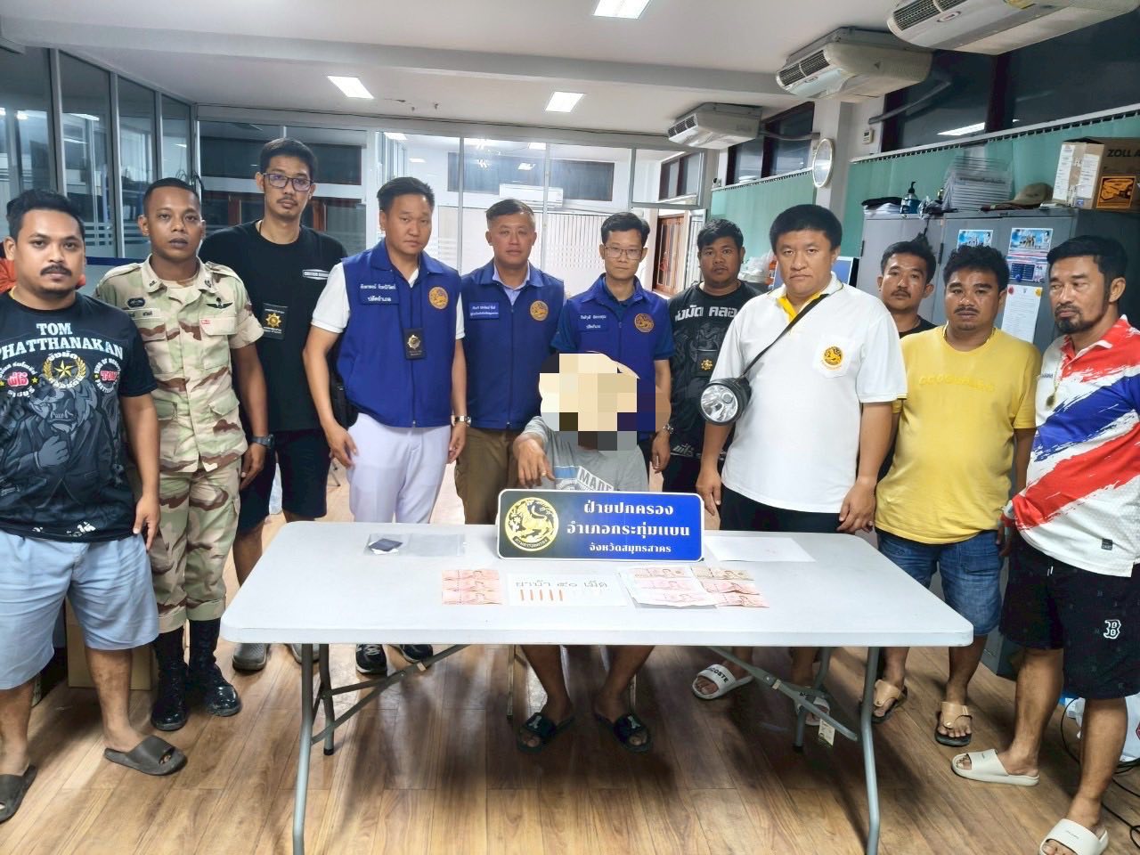 เจ้าหน้าที่ได้เข้าตรวจค้นจุดแรกบริเวณตลาดกระทุ่มแบน พบกลุ่มวัยรุ่นจำนวนมากกำลังรวมตัวกัน เมื่อกลุ่มวัยรุ่นเห็นเจ้าหน้าที่ต่างพากันแตกกระเจิงหนีไปคนละทิศละทาง แต่เจ้าหน้าที่สามารถจับกุมผู้ต้องหาได้ 7 คน พร้อมของกลางเป็น ยาบ้า 767 เม็ด