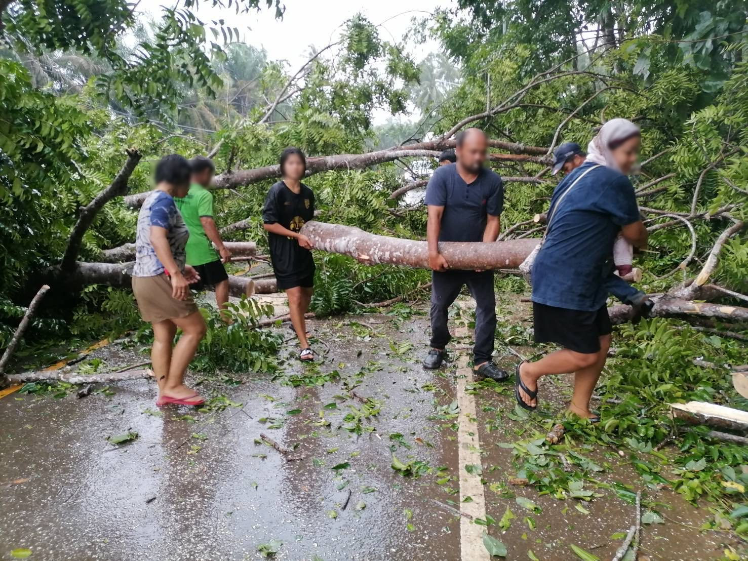 - อำเภอเมืองกระบี่: 2 ตำบล 1 ชุมชน 8 หมู่บ้าน มีบ้านเรือนเสียหายรวม 70 หลัง (ต.ไสไทย 10 หลัง, ต.คลองประสงค์ 60 หลัง) และต้นไม้ล้มขวางถนนในเขตเทศบาลเมืองกระบี่