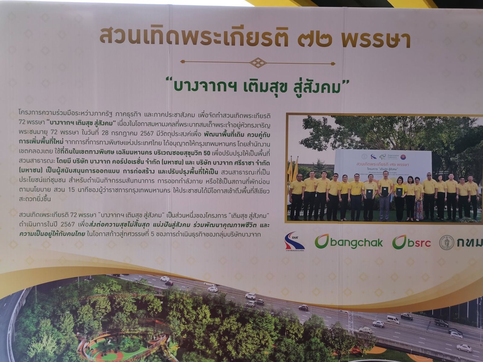 การทางพิเศษฯ เดินหน้าส่งเสริมคุณภาพชีวิตของประชาชนอย่างยั่งยืน ควบคู่ภารกิจหลักด้านการคมนาคม ด้วยการสนับสนุนโครงการ “สวนเทิดพระเกียรติ 72 พรรษา บางจากฯ เติมสุข สู่สังคม” บริเวณซอยสุขุมวิท 50 เขตคลองเตย โดยมอบพื้นที่ในเขตทางพิเศษเฉลิมมหานครให้กรุงเทพมหานครใช้ประโยชน์เพื่อการพัฒนาพื้นที่สีเขียว เปิดโอกาสให้ชุมชนได้มีแหล่งพักผ่อน ทำกิจกรรม และการเรียนรู้อย่างสร้างสรรค์
