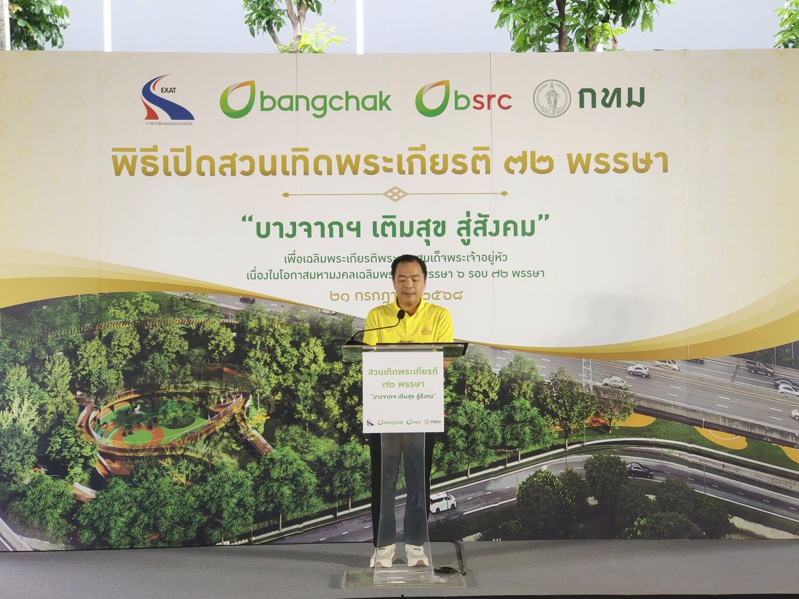 วันนี้ (21 กรกฎาคม 2568) เวลา 09.15 น. ณ บริเวณสวนเทิดพระเกียรติ ริมทางพิเศษเฉลิมมหานคร เลียบทางลงทางด่วน ถนนสุขุมวิท 50 นายสุรเชษฐ์ เหล่าพูลสุข ผู้ว่าการการทางพิเศษแห่งประเทศไทย (กทพ.) กระทรวงคมนาคม ,นายชัชชาติ สิทธิพันธุ์ ผู้ว่าราชการกรุงเทพมหานคร และนายชัยวัฒน์ โควาวิสารัช ประธานเจ้าหน้าที่บริหารกลุ่มบริษัทบางจากและกรรมการผู้จัดการใหญ่ บริษัท บางจาก คอร์ปอเรชั่น จำกัด (มหาชน) ร่วมพิธีเปิดสวนเทิดพระเกียรติ 72 พรรษา บางจากฯ เติมสุข สู่สังคม