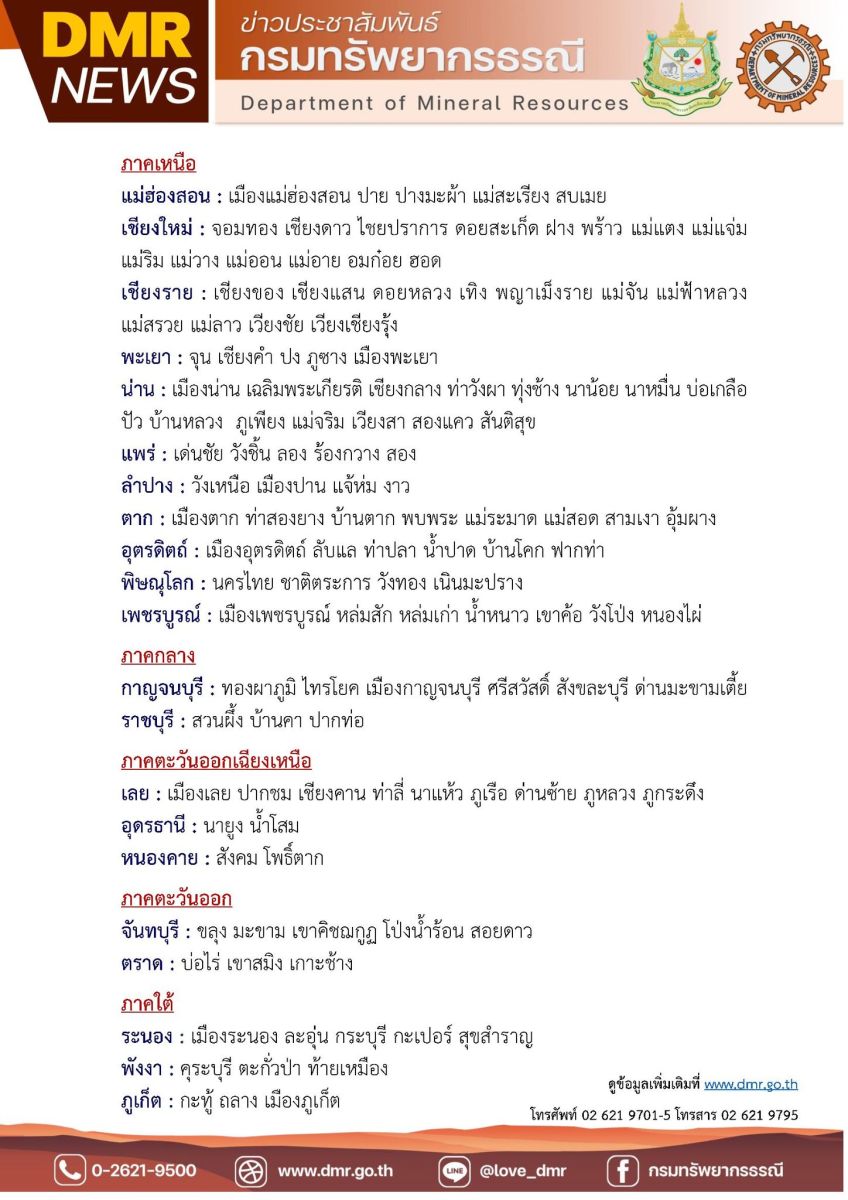 ศูนย์ปฏิบัติการธรณีพิบัติภัย กรมทรัพยากรธรณี Tel. 02 621 9701