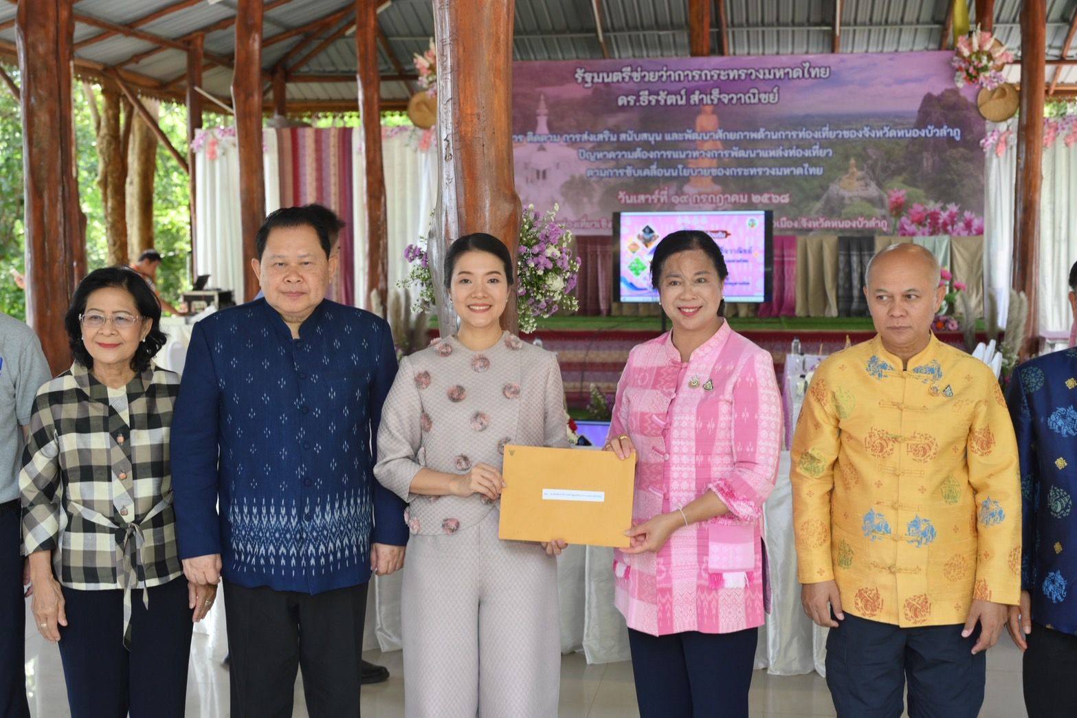 (19 ก.ค. 68) นางสาวธีรรัตน์ สำเร็จวาณิชย์ รัฐมนตรีช่วยว่าการกระทรวงมหาดไทย เป็นประธานตรวจราชการติดตามการส่งเสริมสนับสนุนและพัฒนาศักยภาพด้านการท่องเที่ยวของจังหวัดหนองบัวลำภู พร้อมทั้งรับฟังการสะท้อนปัญหาความต้องการแนวทางการพัฒนาแหล่งท่องเที่ยว ตามนโยบายรัฐบาลและกระทรวงมหาดไทย ณ แหล่งท่องเที่ยวเชิงนิเวศภูพานน้อย ต.หนองบัว อ.เมืองหนองบัวลำภู จ.หนองบัวลำภู โดยมี นายสุรศักดิ์ อักษรกุล ผู้ว่าราชการจังหวัดหนองบัวลำภู นายศศิน พัฒนภิรมย์ นางสาวอรอาภา โล่ห์วีระ รองผู้ว่าราชการจังหวัดหนองบัวลำภู นายกำธร วิเชฏฐพงศ์ ปลัดจังหวัดหนองบัวลำภู นายเตชิต ทรงบุญศาสตร์ นายอำเภอเมืองหนองบัวลำภู นายไชยา พรหมา นายณพล เชยคำแหง นายสยาม หัตถสงเคราะห์ สมาชิกสภาผู้แทนราษฎรจังหวัดหนองบัวลำภู นางเทียบจุฑา ขาวขำ สมาชิกสภาผู้แทนราษฎรจังหวัดอุดรธานี นางศรัณยา สุวรรณพรหม นายกองค์การบริหารส่วนจังหวัด (อบจ.) หนองบัวลำภู พร้อมคณะผู้บริหาร สมาชิกสภา ข้าราชการ และเจ้าหน้าที่ อบจ.หนองบัวลำภู เข้าร่วม