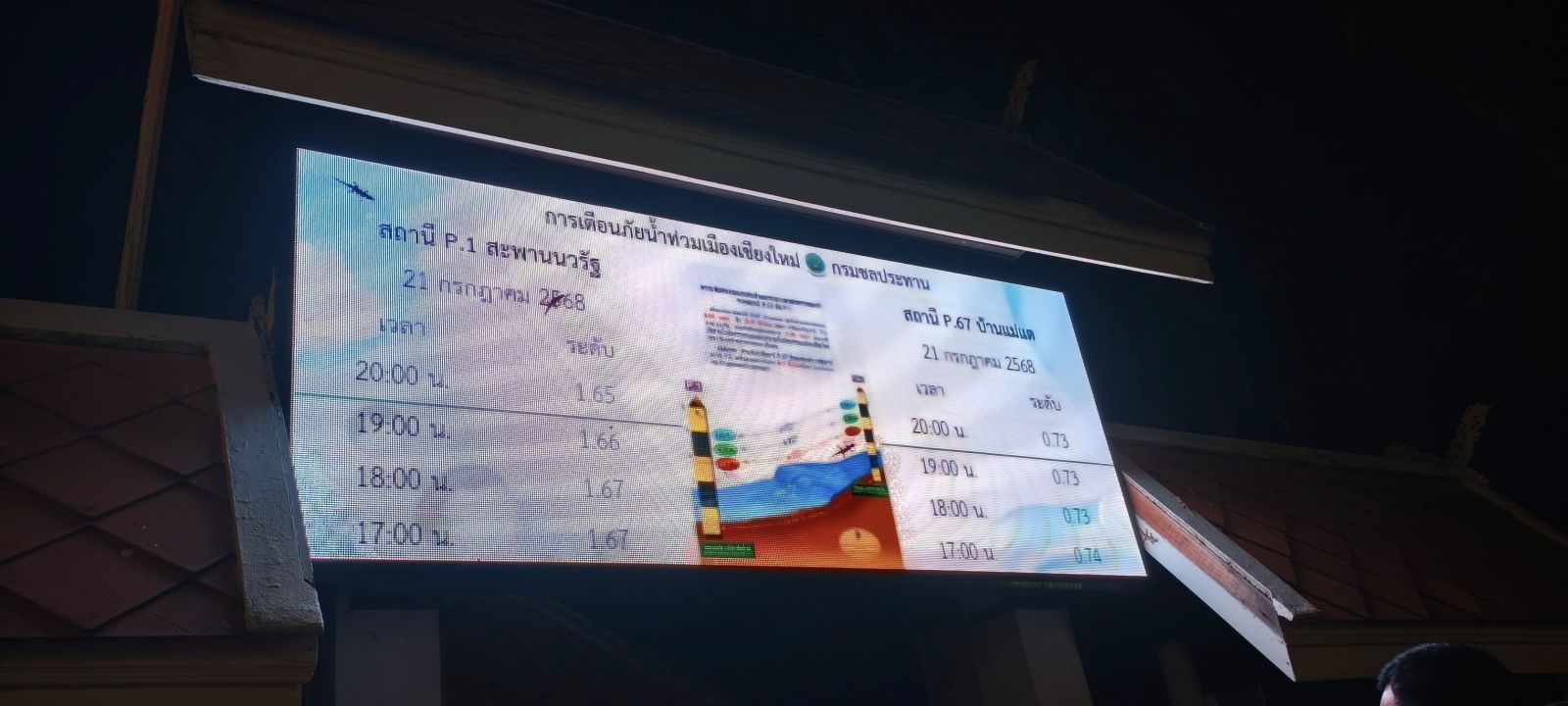 (21 ก.ค 68) เวลา 21.00 น. นายภาสกร บุญญลักษม์ อธิบดีกรมป้องกันและบรรเทาสาธารณภัย นำทีม ปภ.ส่วนหน้า ลงพื้นที่จังหวัดเชียงใหม่ เตรียมพร้อมติดตามและประเมินสถานการณ์ผลกระทบจากพายุ "วิภา" ร่วมกับจังหวัดในพื้นที่ภาคเหนืออย่างใกล้ชิด โดยลงพื้นที่ติดตามสถานการณ์น้ำและระดับน้ำแม่น้ำปิง บริเวณสถานี P.1 สะพานนวรัฐ มีนายศิวกร บัวป้อง รองผู้ว่าราชการจังหวัดเชียงใหม่ ผู้บริหาร ปภ. ว่าที่ร้อยตรี ณัฐพงค์ ฐิตวิกรานต์ ผู้อำนวยการศูนย์ป้องกันและบรรเทาสาธารณภัย เขต 10 ลำปาง นายดุสิต พงศาพิพัฒน์ หัวหน้าสำนักงานป้องกันและบรรเทาสาธารณภัยจังหวัดเชียงใหม่ นายชนม์ฐพัฒน์ เครือศรี วิศวกรชลประทานชำนาญการ กรมชลประทาน ร่วมลงพื้นที่และบรรยายสรุปสถานการณ์