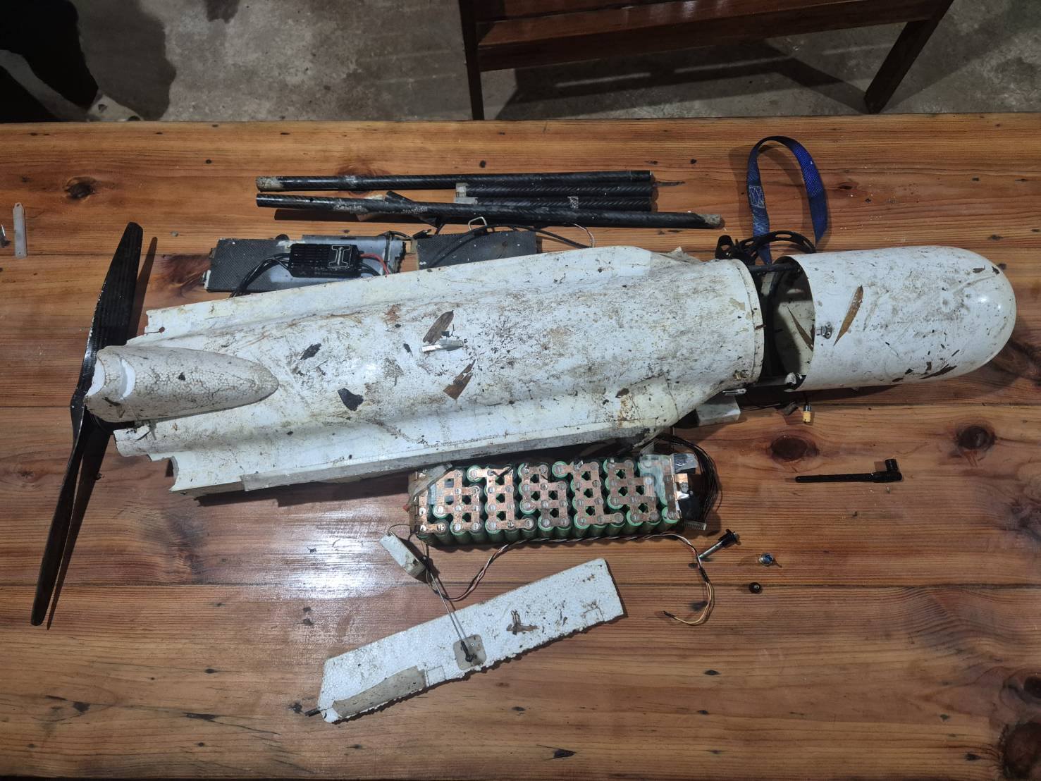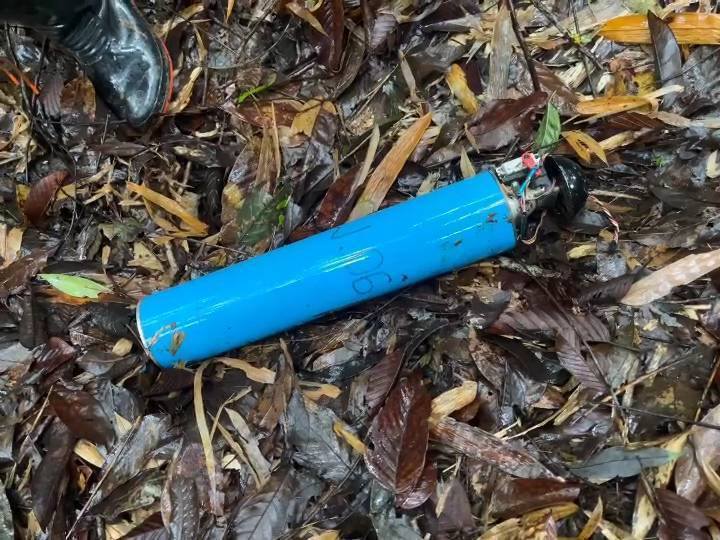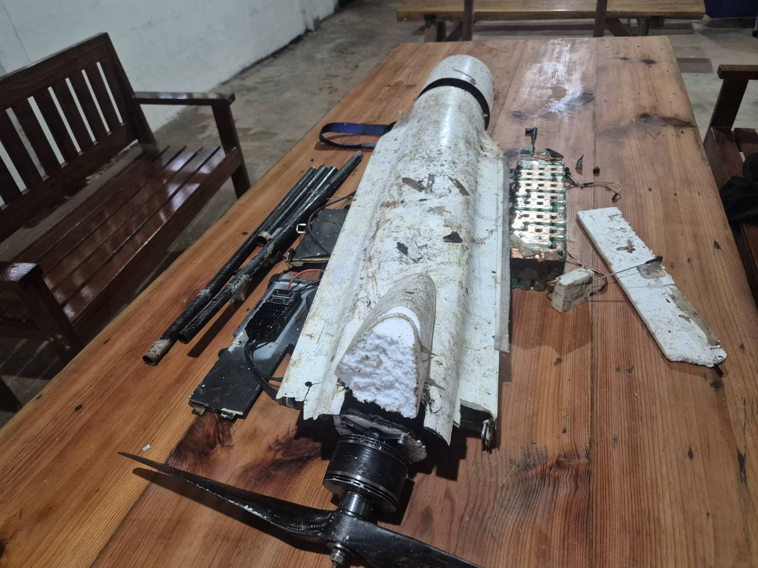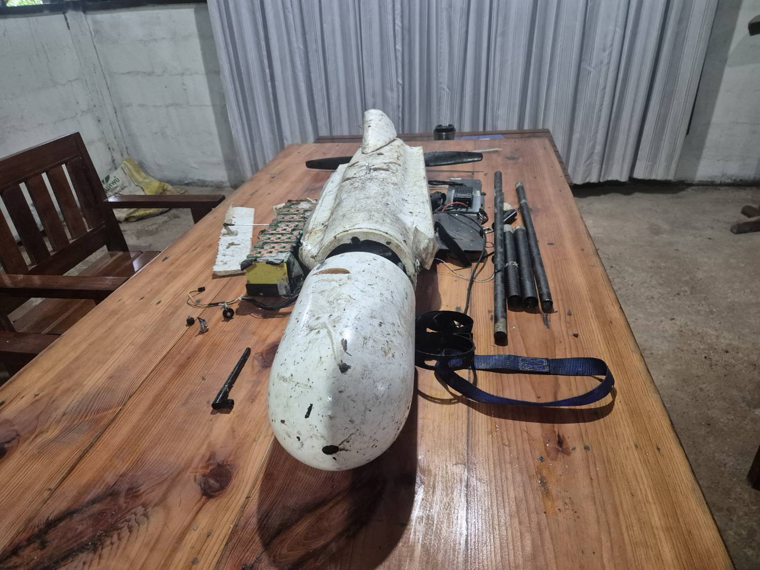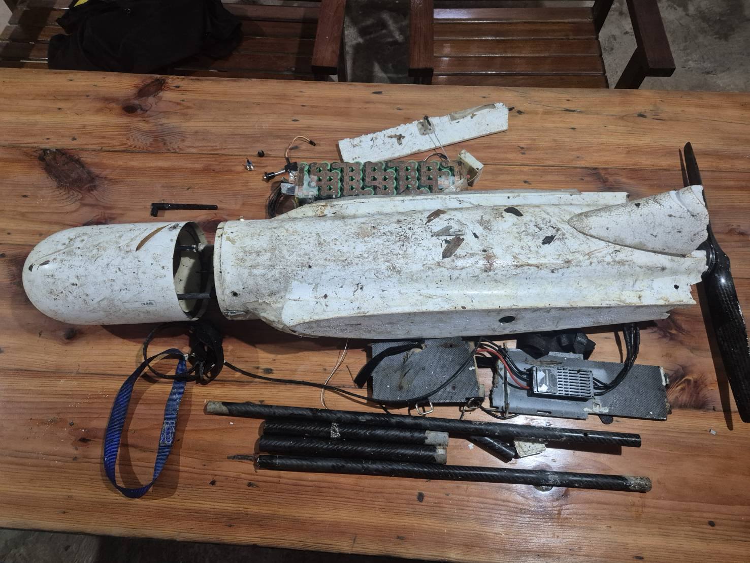 โดรนกามิกาเซ่ของเมียนมา ติดกระบอกแก๊ส คาดเป็นหัวระเบิด ยิงพลาดเป้าตกในไทย พื้นที่บ้านขุนแม่เหว่ย อ.ท่าสองยาง ทหารประสานจนท.เร่งเก็บกู้