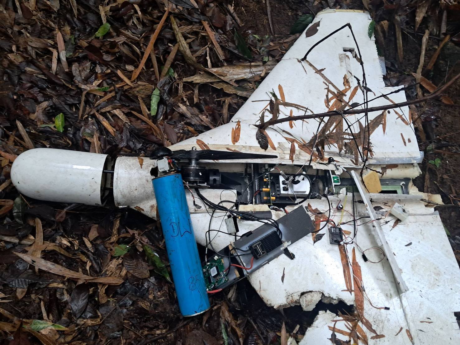 หน่วยเฉพาะกิจกรมทหารพรานที่ 35 โดยร้อย ทพ.3502 ได้รับแจ้งจากราษฎรบ้านขุนแม่เหว่ย ต.ท่าสองยาง อ.ท่าสองยาง จ.ตาก ว่าพบอากาศศยานไร้คนขับ ( โดรน ) ตกในป่าห่างจากตัวหมู่บ้านประมาณ 5 กม. ทางเจ้าหน้าที่ทหารพราน จึงได้จัดกำลังรุดไปตรวจสอบ เมื่อไปถึงจุดที่โดรนตก พิกัด LV 84113 60146.  หมู่ 5 ต.ท่าสองยาง อ.ท่าสองยาง พบอากาศยานไร้คนขับ หรือโดรนแบบกามิกาเซ่ จำนวน 1 ลำ ประกอบด้วยแบตเตอรี่ จำนวน 1 ก้อน , ตัวรับสัญญาณมอเตอร์ จำนวน 1 ตัว และ ถังแก๊สกระบอกติดกับหัวเครื่องบิน (คาดว่าเป็นหัวระเบิด) ตัวเลข DW 06 ล่าง 85 จำนวน 1 ลูก