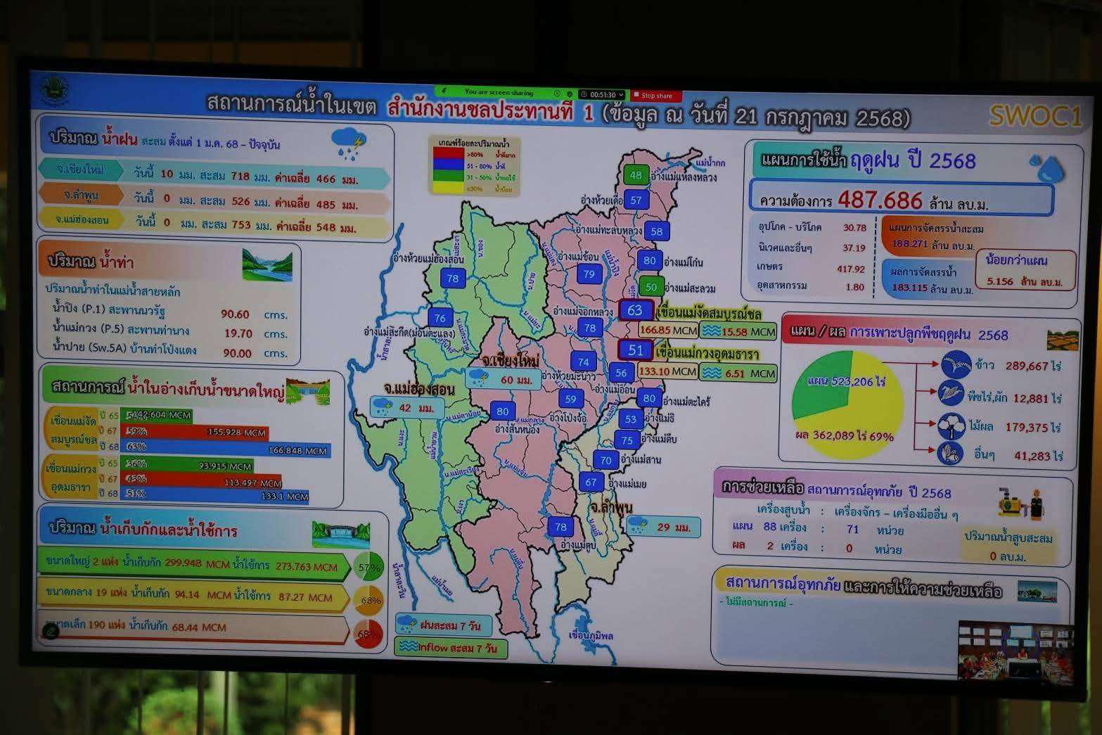 วันนี้ (22 ก.ค.68) เวลา 10.30 น. ที่ศูนย์ปฏิบัติการน้ำอัจฉริยะ (SWOC 1) สำนักงานชลประทานที่ 1 เชียงใหม่ นายภาสกร บุญญลักษม์ อธิบดีกรมป้องกันและบรรเทาสาธารณภัย เป็นประธานการประชุมกองอำนวยการป้องกันและบรรเทาสาธารณภัยกลาง (ส่วนหน้า) เพื่อติดตามสถานการณ์อุทกภัยและดินถล่มและการให้ความช่วยเหลือ โดยมี รองศาสตราจารย์ ดร.เสรี ศุภราทิตย์ ผู้เชี่ยวชาญพิเศษด้านการจัดการสาธารณภัย ศูนย์เตือนภัยพิบัติแห่งชาติ ผู้บริหารกรมปภ. รองศาสตราจารย์ ชูโชคอายุพงษ์ หัวหน้าศูนย์ความเป็นเลิศด้านการจัดการภัยพิบัติทางธรรมชาติ มหาวิทยาลัยเชียงใหม่ ผู้อำนวยการศูนย์อุตุนิยมวิทยาภาคเหนือ ผู้อำนวยการศูนย์อุตุนิยมวิทยาเชียงใหม่ ผู้อำนวยการสำนักงานที่ 1 เชียงใหม่ พัฒนาสังคมและความมั่นคงของมนุษย์จังหวัดเชียงใหม่ หัวหน้าสำนักงานป้องกันและบรรเทาสาธารณภัยจังหวัดเชียงใหม่ รวมถึงสำนักงานป้องกันและบรรเทาสาธารณภัยจังหวัดภาคเหนือ ภาคตะวันออกเฉียงเหนือ และศูนย์ป้องกันและบรรเทาสาธารณภัยเขต ในพื้นที่เสี่ยงได้ผลกระทบจากพายุวิภา เข้าร่วมการประชุมฯ ผ่านสื่ออิเล็กทรอนิกส์