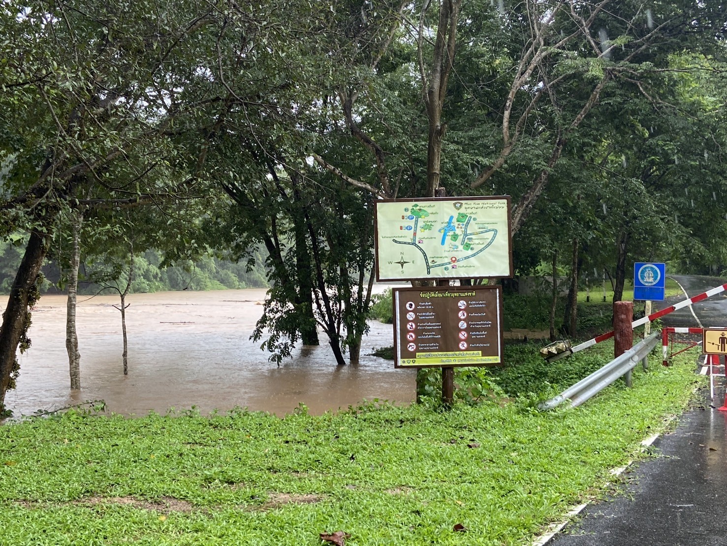 จากอิทธิพลของพายุและฝนตกต่อเนื่อง ทำให้ระดับน้ำในพื้นที่อุทยานฯ เพิ่มสูงอย่างรวดเร็ว ล่าสุดท่วมถนนทางเข้าไม่สามารถสัญจรได้ เจ้าหน้าที่เร่งอพยพและขนย้ายทรัพย์สินขึ้นที่สูง คาดว่าสถานการณ์ยังวิกฤต หากฝนไม่หยุดตก
