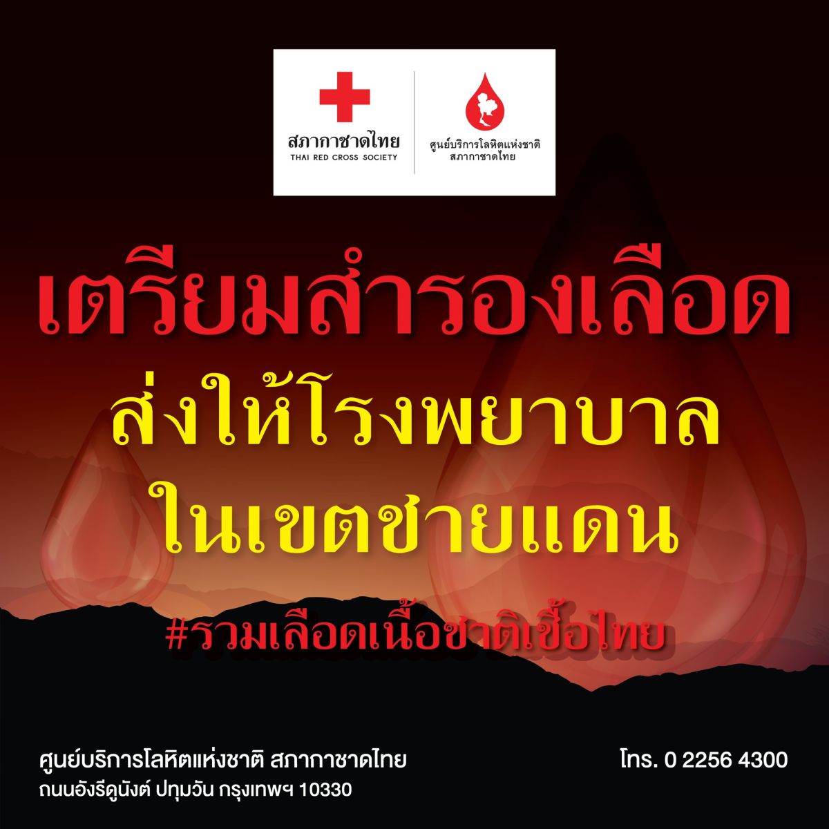 ศูนย์บริการโลหิตแห่งชาติ และภาคบริการโลหิตแห่งชาติในพื้นที่ ได้มีการเตรียมโลหิตสำรองไว้สนับสนุนโรงพยาบาลและหน่วยงานสาธารณสุขในเขตพื้นที่ โดยช่วงเช้าที่ผ่านมา ได้มีการส่งโลหิตไปยัง รพ. ในพื้นที่ชายแดน จำนวน 200 ถุง และยังคงต้องการโลหิตบริจาคอย่างต่อเนื่อง