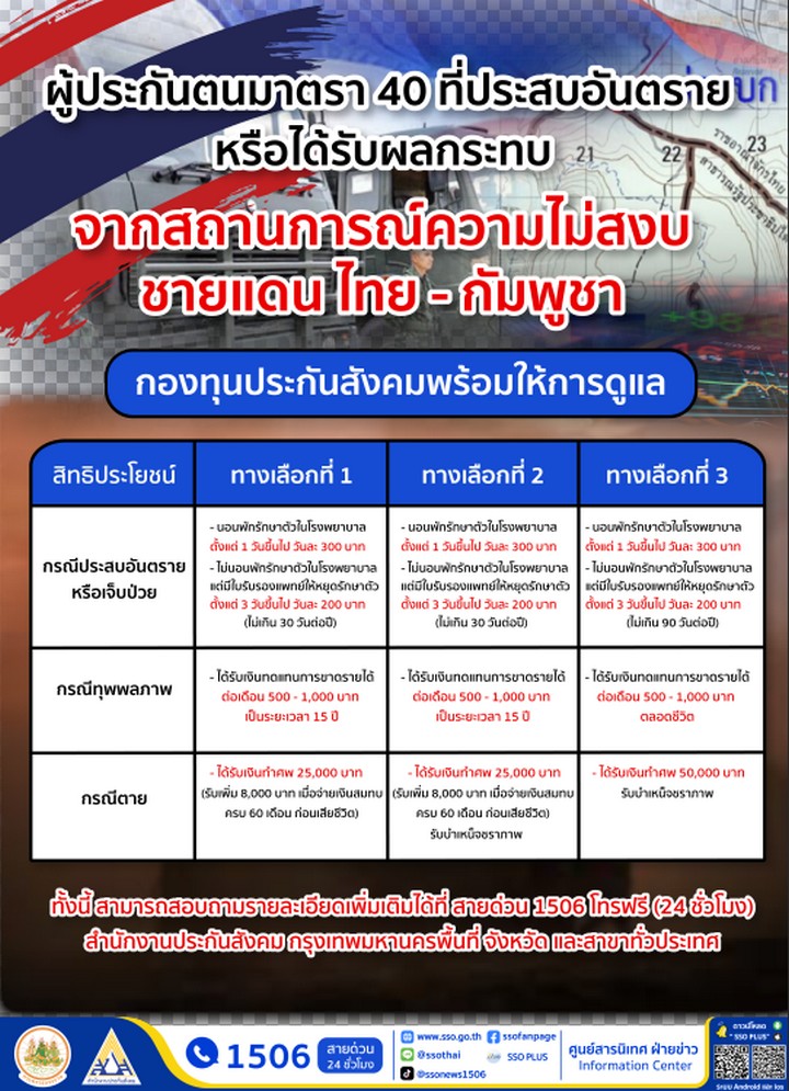 ประกันสังคมห่วงใยสถานการณ์ความไม่สงบชายแดน ไทย – กัมพูชา