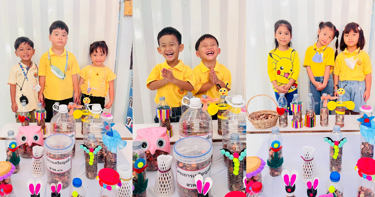 น้องลูฟี่ อายุ 5 ขวบ ชั้นอนุบาล 3 โรงเรียนอนุบาลดวงจิต บอกว่า “วันนี้ เอาเหรียญสลึงมาให้ และรู้สึกภูมิใจครับ”