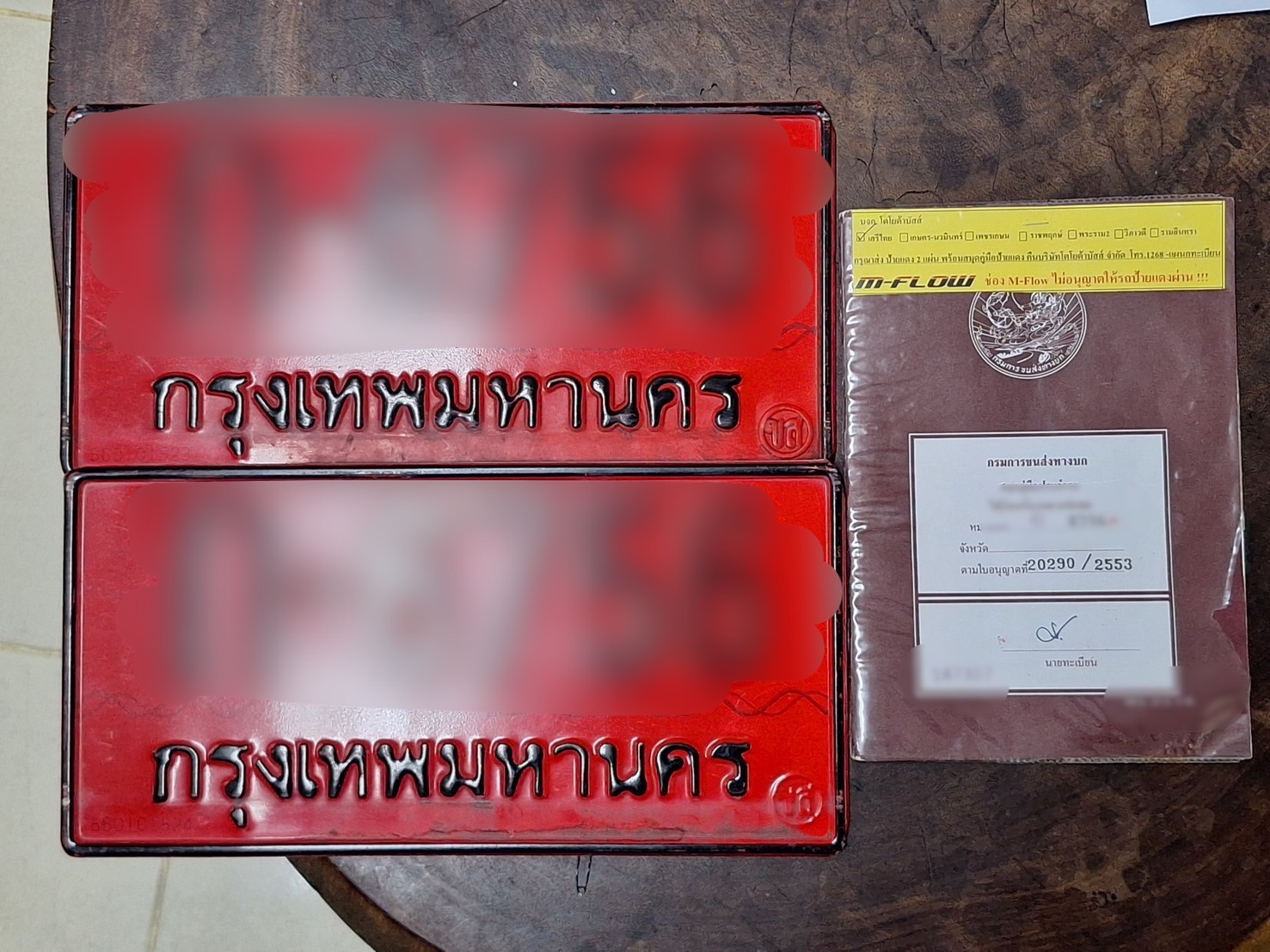 3. แผ่นป้ายทะเบียนรถยนต์ป้ายแดง ทะเบียน กรุงเทพมหานคร จำนวน 2 แผ่น