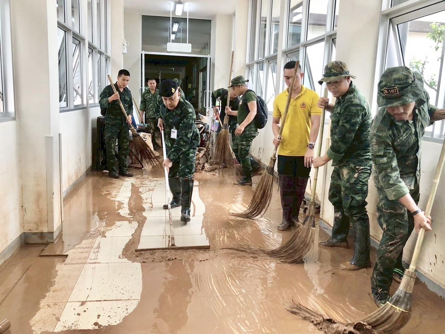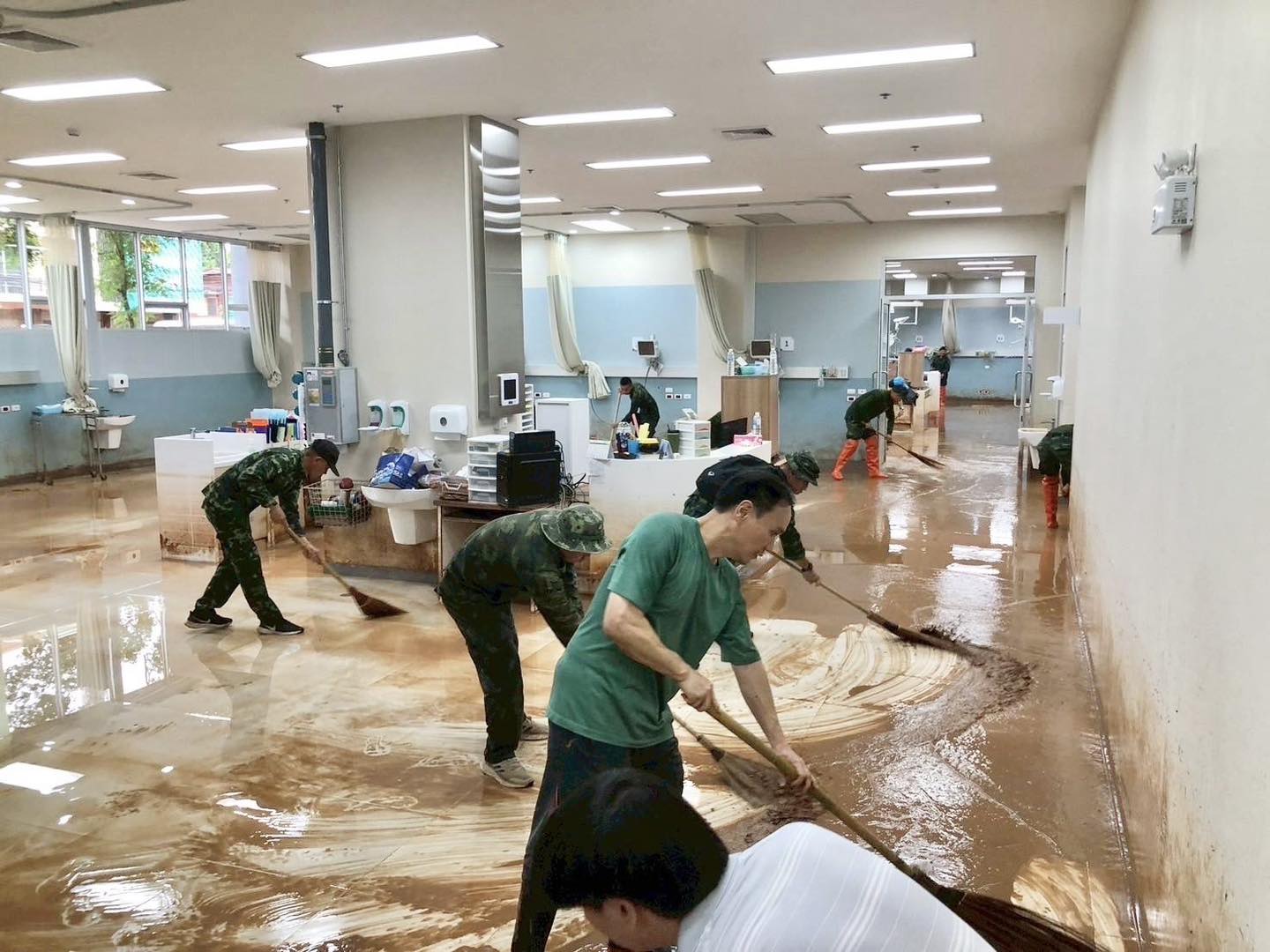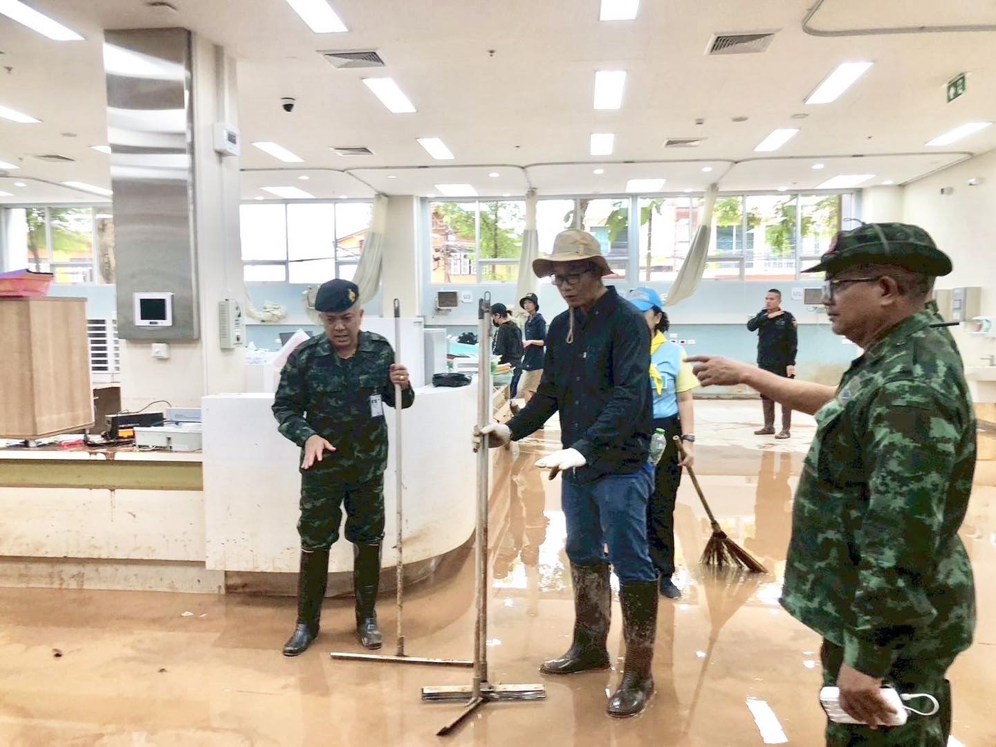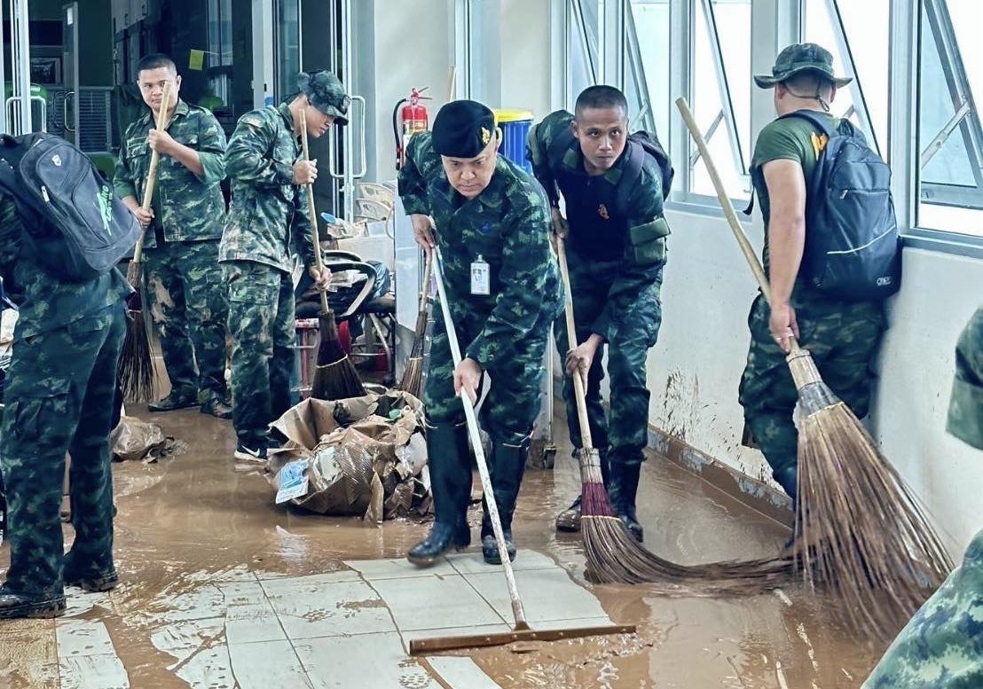ในการนี้ ผู้บัญชาการมณฑลทหารบกที่ 38 และคณะ ได้ร่วมกิจกรรมจิตอาสาพระราชทานในการทำความสะอาดพื้นที่บริเวณโดยรอบอาคาร เพื่อเร่งฟื้นฟูให้โรงพยาบาลสามารถกลับมาเปิดให้บริการแก่ประชาชนได้โดยเร็วที่สุด