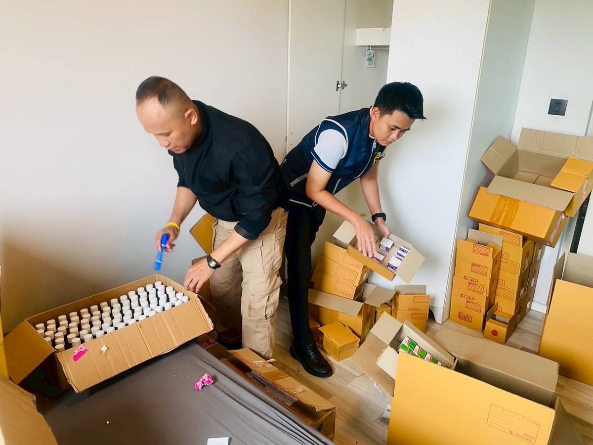 การตรวจค้นในครั้งนี้ พบยารักษาโรคที่ใช้รักษาโรคพาร์กินสัน ซึ่งนิยมนำมาใช้ในทางที่ผิด เพื่อหวังผลให้เกิดอาการเคลิ้ม มึนเมาเป็นจำนวนมาก โดยจากการสืบสวน ทราบว่ากลุ่มเครือข่ายผู้กระทำความผิดได้เช่าห้องอยู่มาเป็นระยะเวลาประมาณ 1 ปี โดยเช่าไว้สำหรับเก็บ และแพ็คสินค้าส่งเท่านั้นเพื่อให้ยากแก่การตรวจสอบ แต่ไม่ได้ใช้พักอาศัยจริง และมักมีพฤติกรรม รับ-ส่ง พัสดุ จำนวนมากผิดปกติโดยนำมาขายออนไลน์ให้กับลูกค้าผ่านเว็บไซต์ ซึ่งขายให้กับประชาชนทั่วไปในหลายจังหวัดทั่วประเทศ