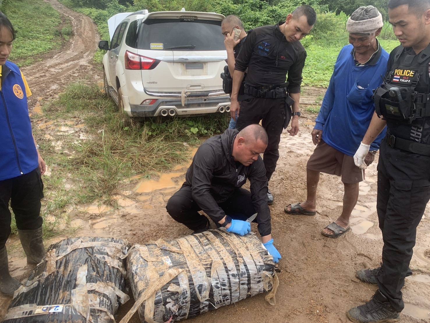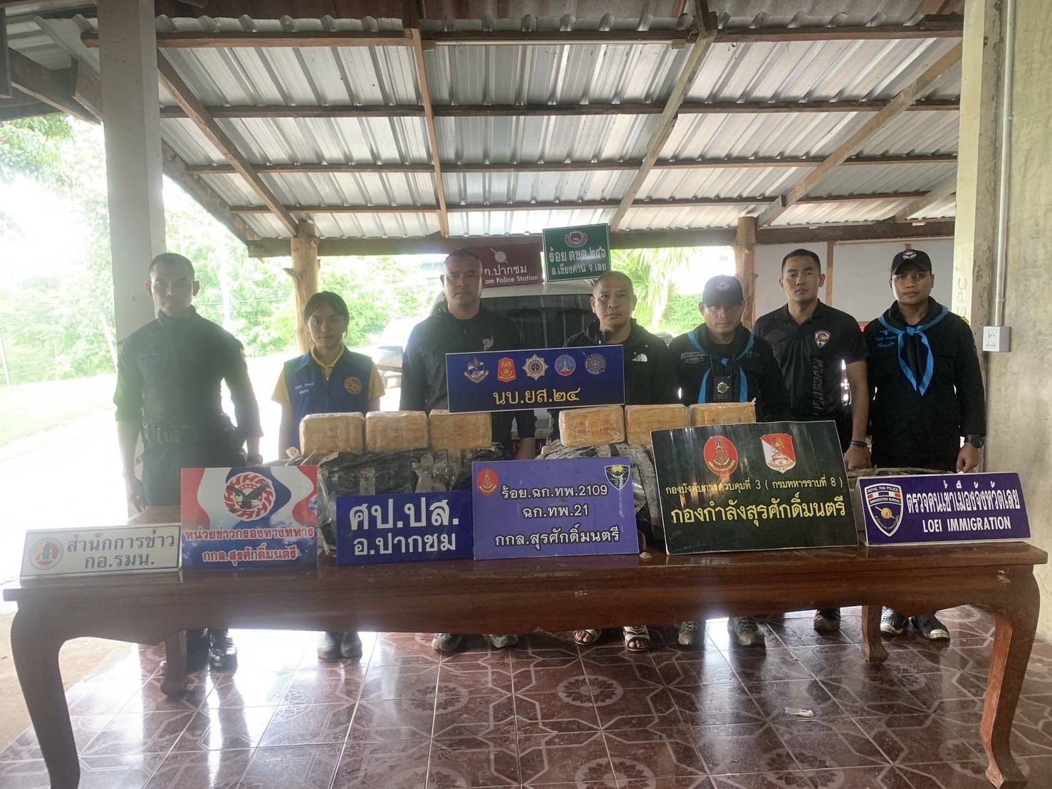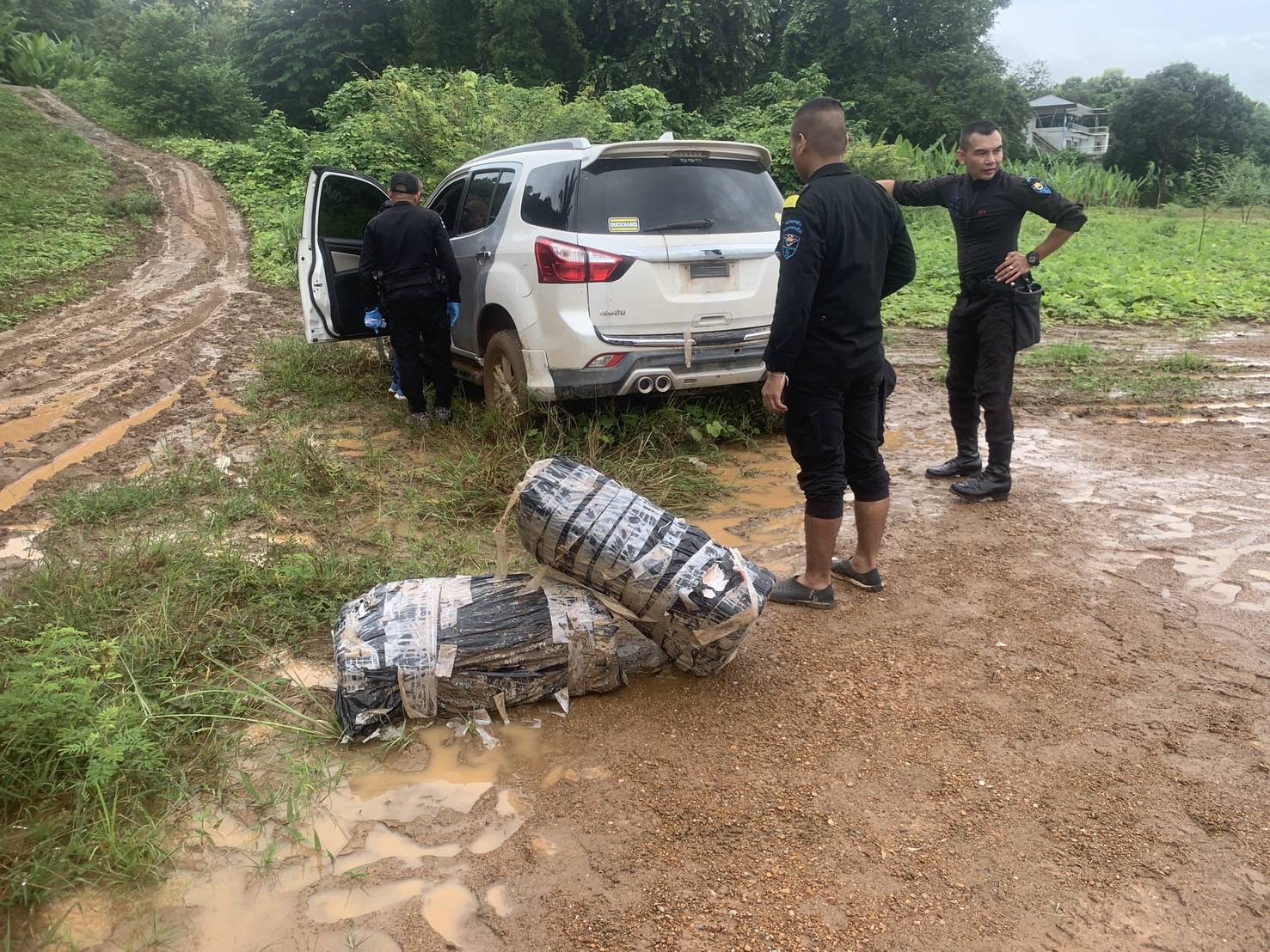 หน่วยฯ จึงได้บูรณาการร่วมกับ จนท.สืบสวน สภ.ปากชม, ฝ่ายปกครอง ผญบ.ห้วยทับช้าง และหน่วยงานความมั่นคงในพื้นที่ เฝ้าตรวจบริเวณเขื่อนกันตลิ่งทรุด พื้นที่ บ.ห้วยทับช้าง ม.7 ต. ห้วยพิชัย อ.ปากชม จ.เลย ไม่พบความเคลื่อนไหวหรือบุคคลใดแสดงตัวเป็นเจ้าของ จนท.จึงร่วมกันเข้าตรวจสอบ บริเวณรอบรถยนต์คันดังกล่าว