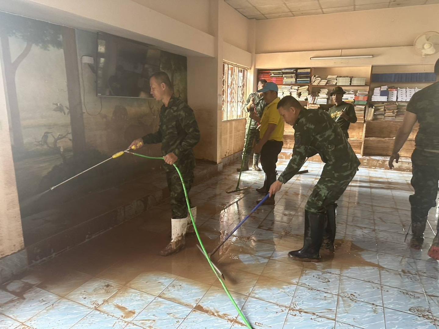 ศบภ.มทบ.38 ได้จัดกำลังพลชุดปฏิบัติบรรเทาสาธารณภัย จาก ม.2 พัน.10 ลงพื้นที่เร่งให้การสนับสนุนการฟื้นฟูโรงเรียนที่ได้รับผลกระทบจากอุทกภัยในเขตตำบลในเวียง อำเภอเมืองน่าน จังหวัดน่าน โดยกำลังพลได้ให้การสนับสนุน รถน้ำ และอุปกรณ์ทำความสะอาด เพื่อเร่งฟื้นฟูสภาพแวดล้อมบริเวณโรงเรียนที่ประสบปัญหาน้ำท่วมขังและมีดินโคลนจำนวนมาก ได้แก่ โรงเรียนน่านคริสเตียนศึกษา และโรงเรียนจุมปีวนิดาภรณ์ การดำเนินการในครั้งนี้ มีเป้าหมายเพื่อให้สถานศึกษา กลับคืนสู่สภาพสะอาด มีความปลอดภัยและเหมาะสมต่อการเรียนการสอน โดยเร็วที่สุด สร้างความมั่นใจให้แก่คณะครู นักเรียน และผู้ปกครอง