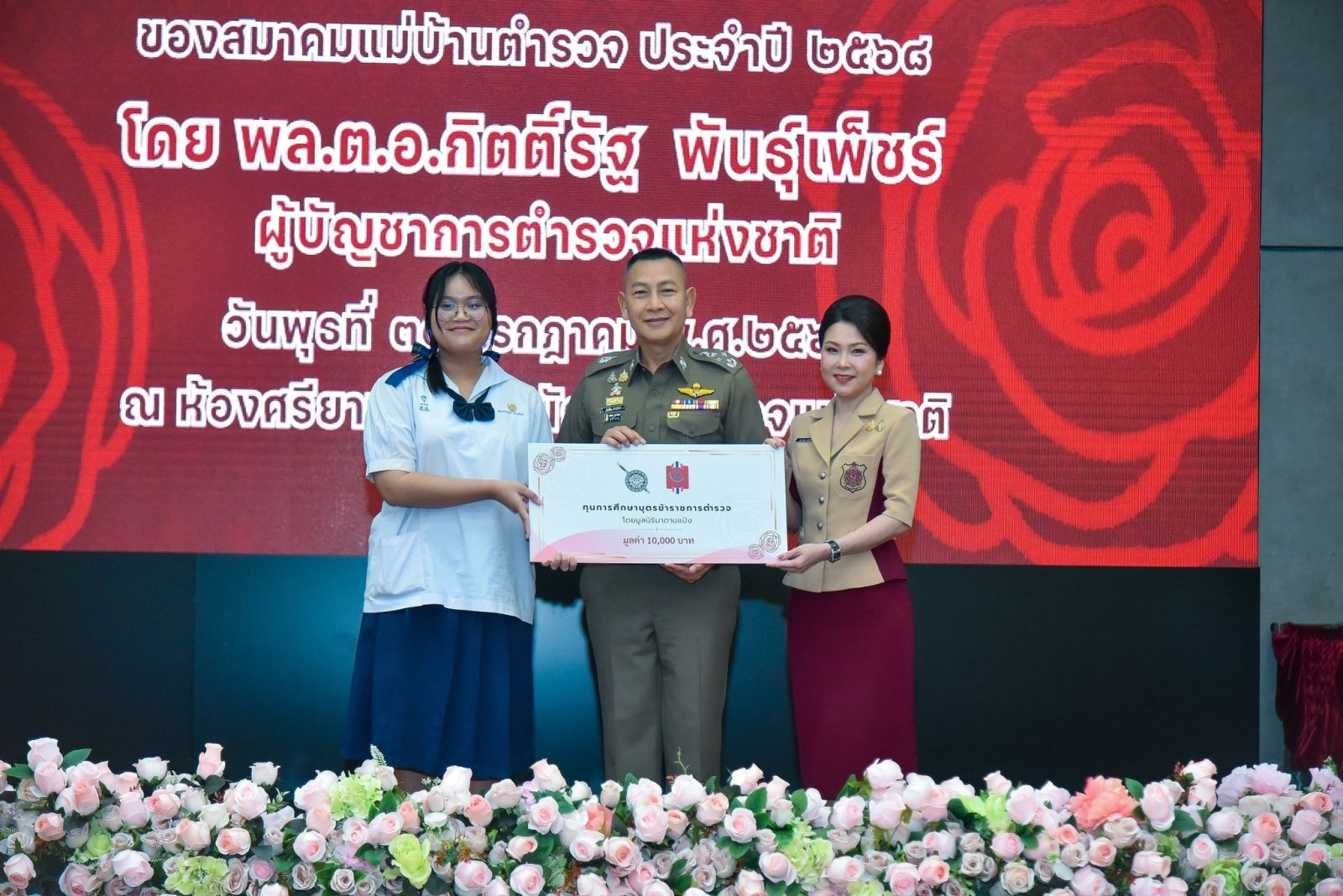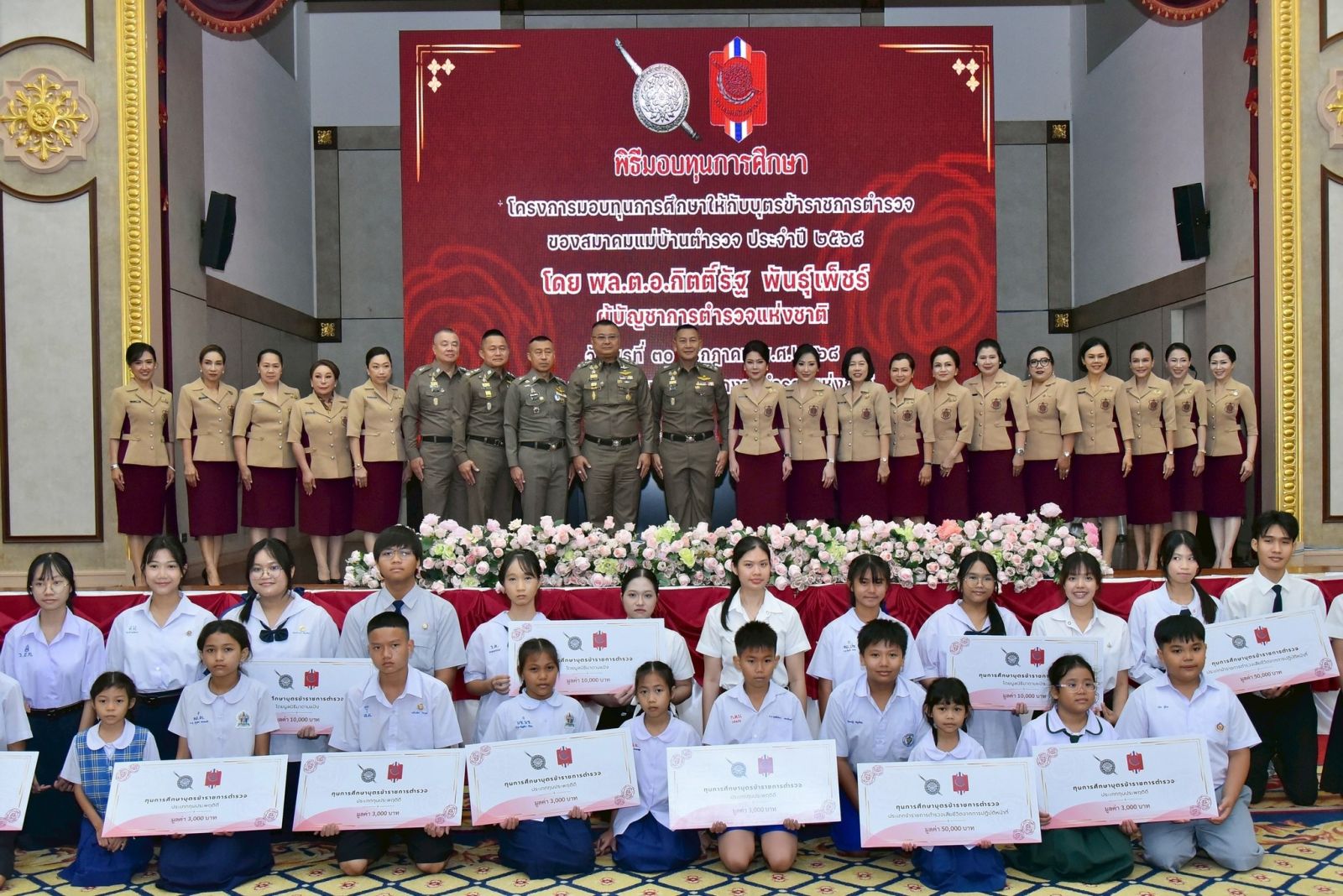 วันนี้ (30 กรกฎาคม 2568) เวลา 10.00 น. พล.ต.อ.กิตติ์รัฐ พันธุ์เพ็ชร์ ผู้บัญชาการตำรวจแห่งชาติ เป็นประธานพิธีมอบทุนการศึกษาให้กับบุตรข้าราชการตำรวจ ของสมาคมแม่บ้านตำรวจ ประจำปีพุทธศักราช 2568 โดยมี คุณกนกวรรณ พันธุ์เพ็ชร์ นายกสมาคมแม่บ้านตำรวจ , พล.ต.อ.กรไชย คล้ายคลึง รองผู้บัญชาการตำรวจแห่งชาติ , พล.ต.ท.สำราญ นวลมา ผู้ช่วยผู้บัญชาการตำรวจแห่งชาติ , พล.ต.ท.อิทธิพล อัจฉริยะประดิษฐ์ รองจเรตำรวจแห่งชาติ , พล.ต.ท.อิทธิพล อิทธิสารรณชัย ผู้ช่วยผู้บัญชาการตำรวจแห่งชาติ และ คุณศิริเพ็ญ ตั้งทวีสุโข นวลมา กรรมการบริหารสมาคแม่บ้านตำรวจ ในฐานะที่ปรึกษาโครงการทุนการศึกษาบุตรข้าราชการตำรวจ ร่วมพิธี ณ ห้องศรียานนท์ ชั้น 2 อาคาร 1 สำนักงานตำรวจแห่งชาติ