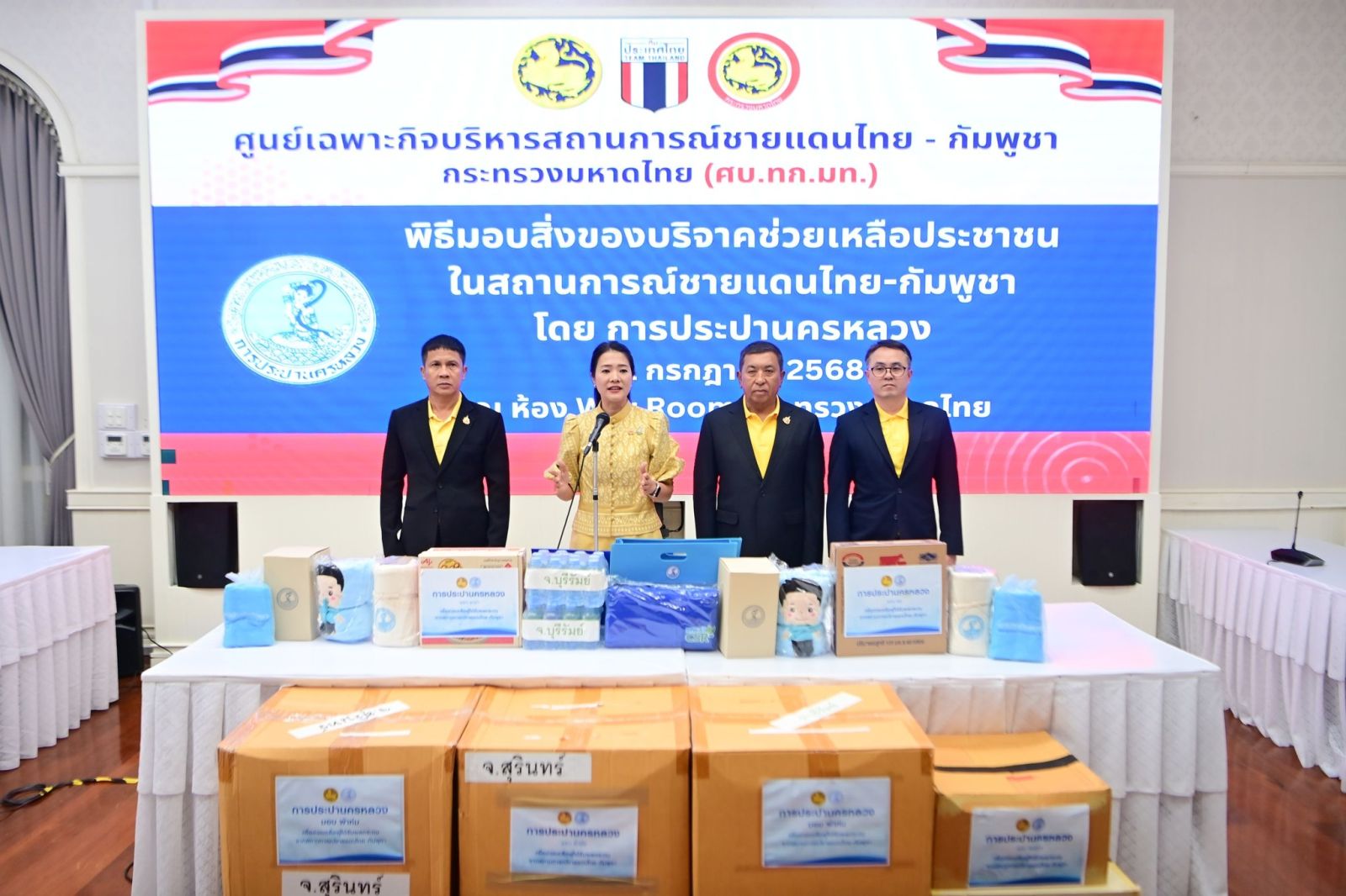 เมื่อวันที่ 31 กรกฎาคม พ.ศ. 2568 เวลา 13.00 น. ณ ห้อง War Room ชั้น 2 อาคารศาลาว่าการกระทรวงมหาดไทย นางสาวธีรรัตน์ สำเร็จวาณิชย์ รัฐมนตรีช่วยว่าการกระทรวงมหาดไทย เป็นประธานในพิธีรับมอบสิ่งของที่จำเป็นและปล่อยขบวนรถ เพื่อนำไปช่วยเหลือประชาชนผู้ได้รับผลกระทบจากสถานการณ์ชายแดนไทย – กัมพูชา ผ่านศูนย์เฉพาะกิจบริหารสถานการณ์ชายแดนไทย - กัมพูชา กระทรวงมหาดไทย โดยมี นางสาวสุวรา ทวิชศรี ผู้ว่าการการประปานครหลวง (กปน.) พร้อมคณะผู้บริหาร กปน. เป็นผู้ส่งมอบ
